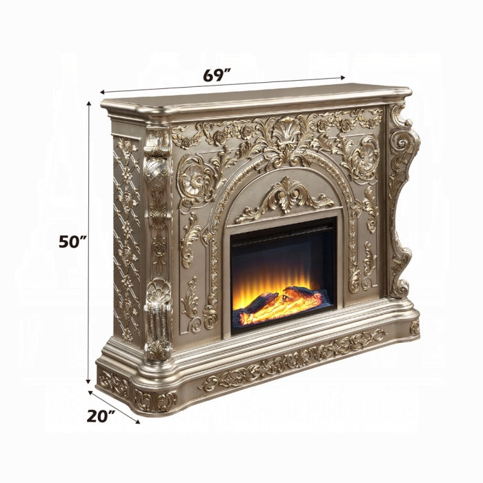 This sophisticated French-styled Danae fireplace mantel is decorated with ornate carvings of flowers, scrolls, and classic acanthus to leave a lasting impression of elegance. The beautiful white finish provides a pristine backdrop for rich artistic details that are accentuated with hand-painted silver accents.