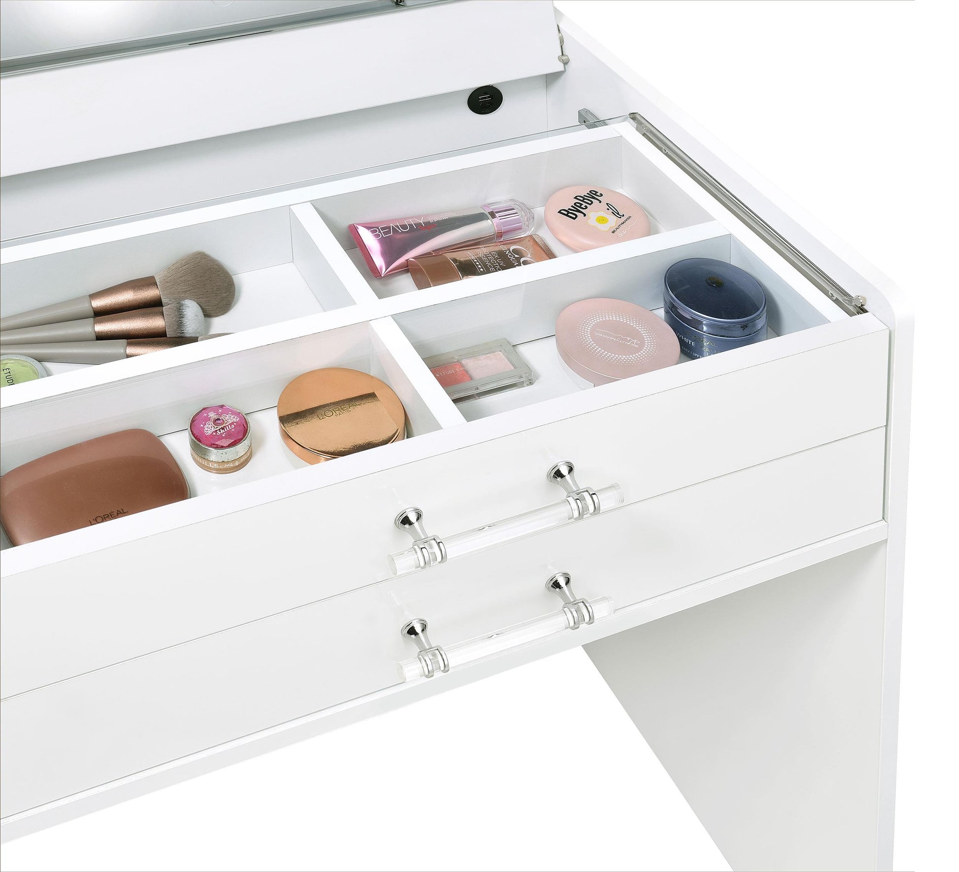 - 3-drawer vanity: keeps cosmetics, brushes, and accessories neatly organized
