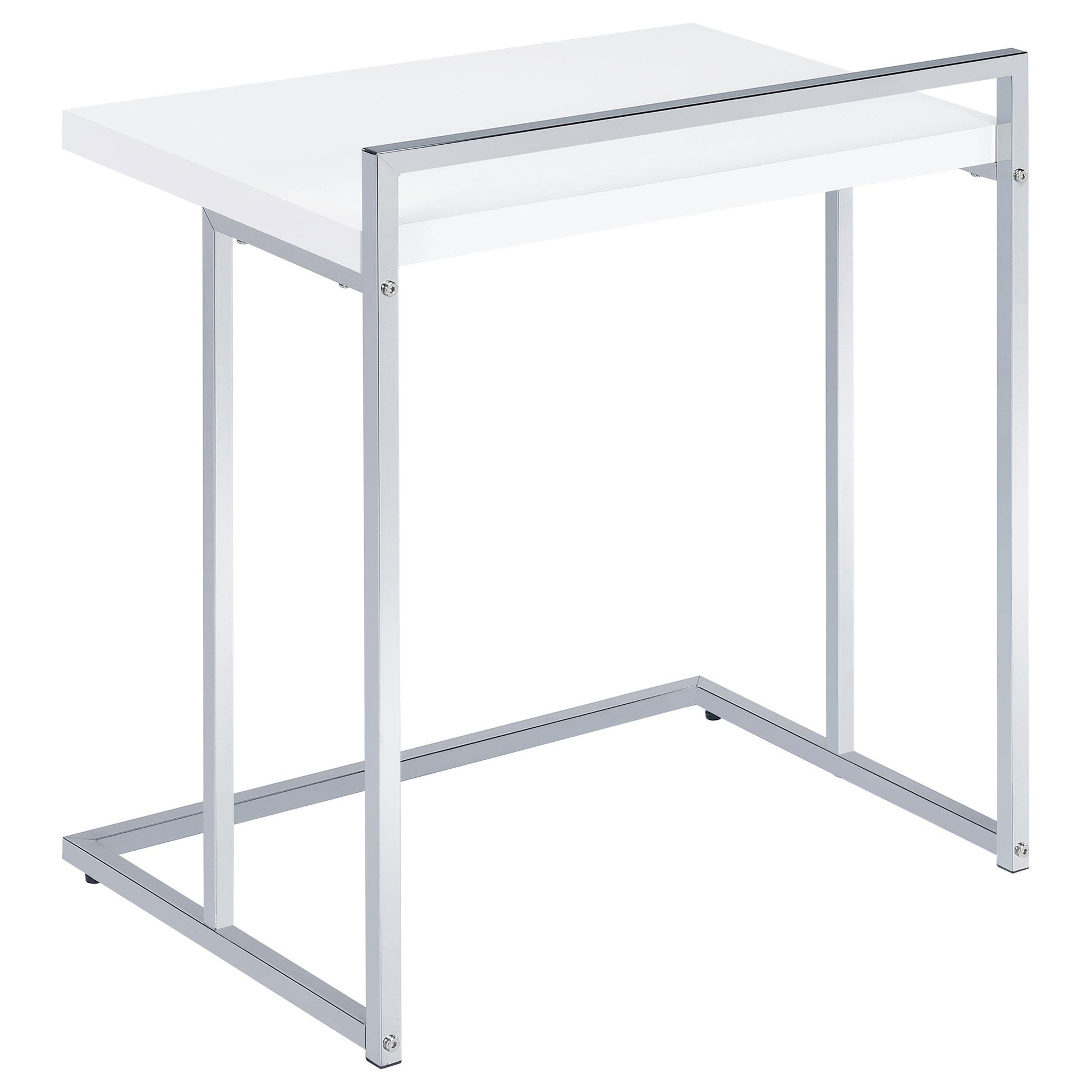 Dani Rectangular C-Shaped Sofa Side Table — White High Gloss