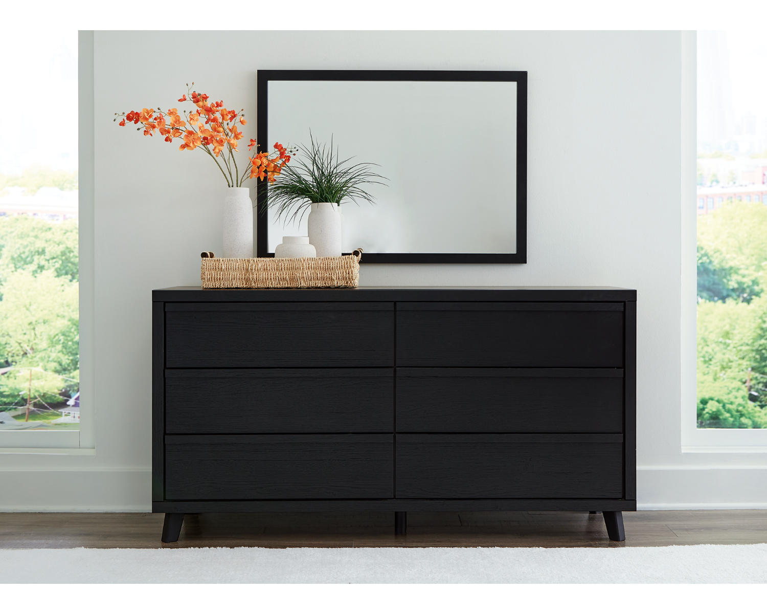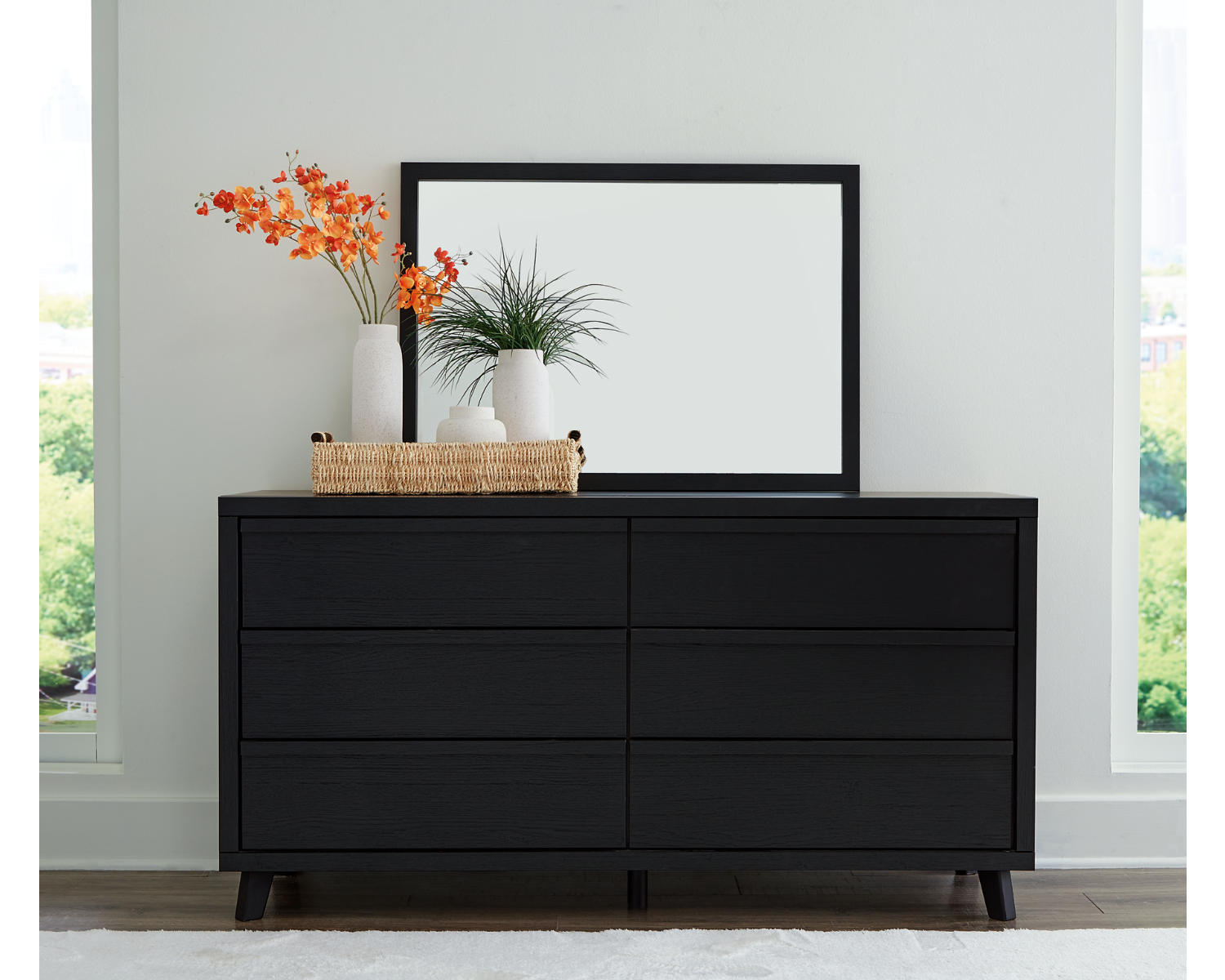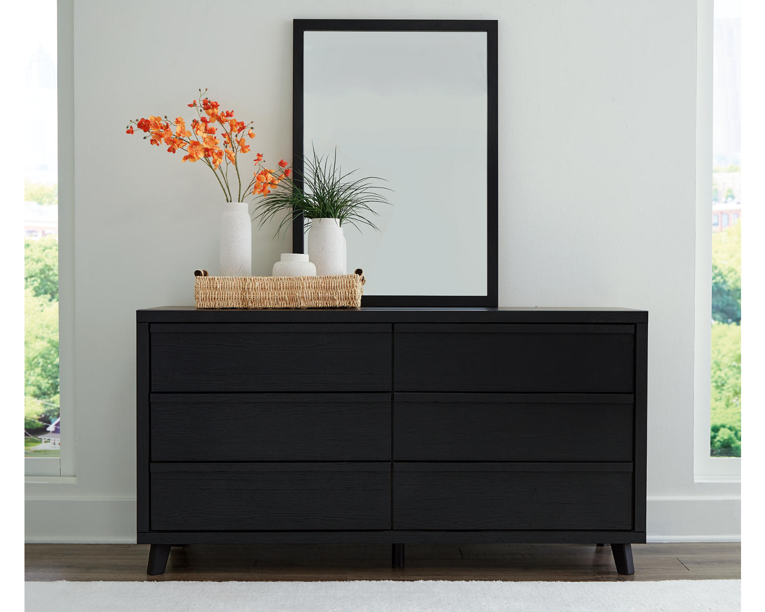 Introducing the Danziar Dresser and Mirror in Black—a smart, space-saving storage solution for bedrooms. This 2-in-1 piece combines a functional dresser with a built-in mirror, ideal for small rooms or anyone who values streamlined style. With its bold black finish and clean lines, it blends easily with various decors while delivering practical storage.