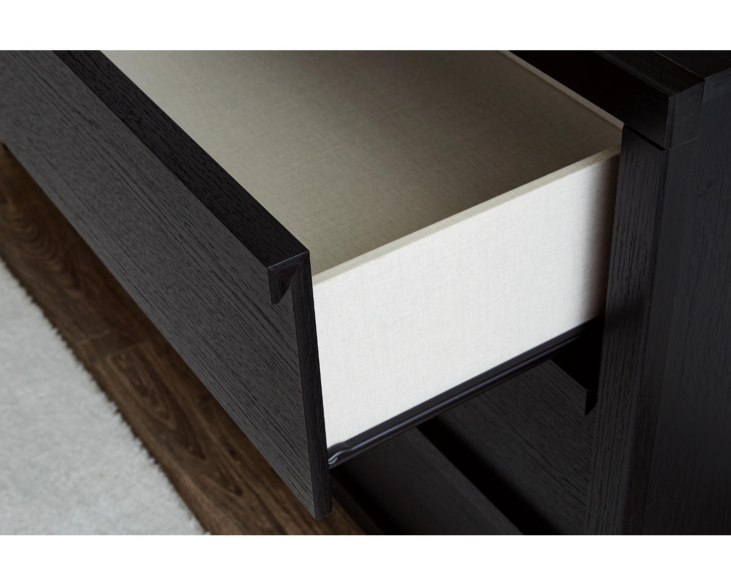 - Black finish with contemporary styling — a bold, versatile look that complements modern bedrooms.