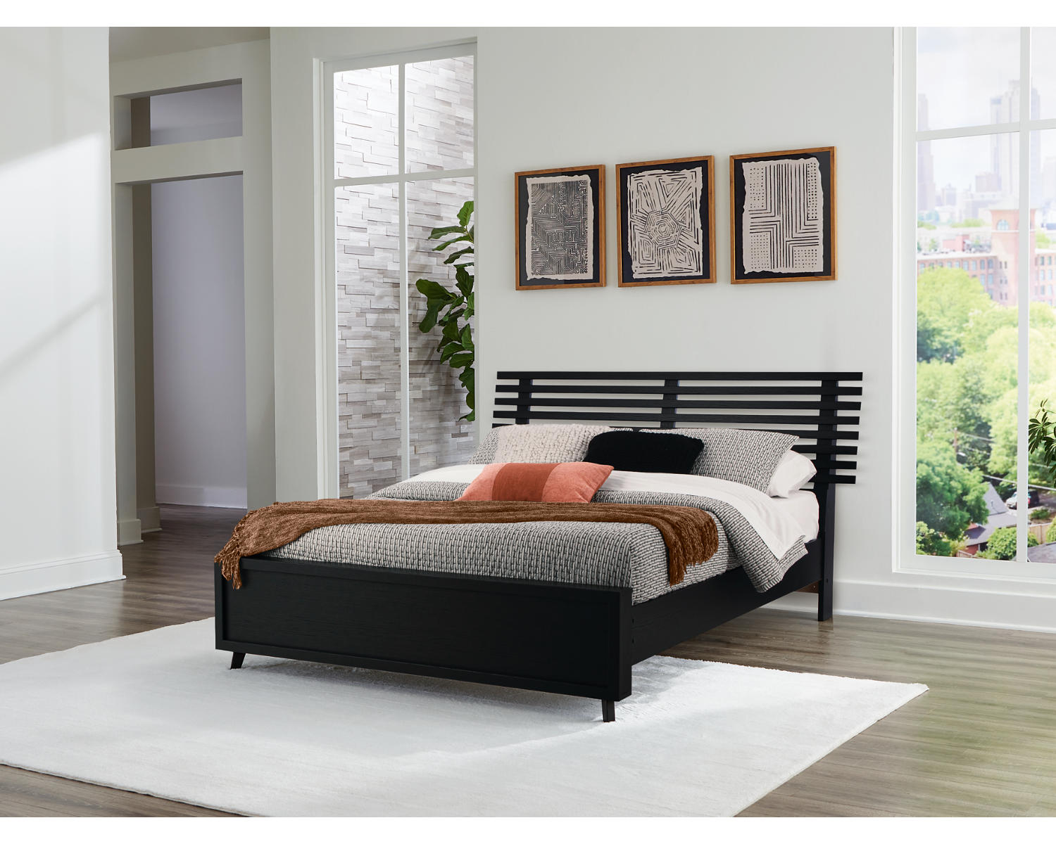 - Slat panel design adds texture and contemporary appeal