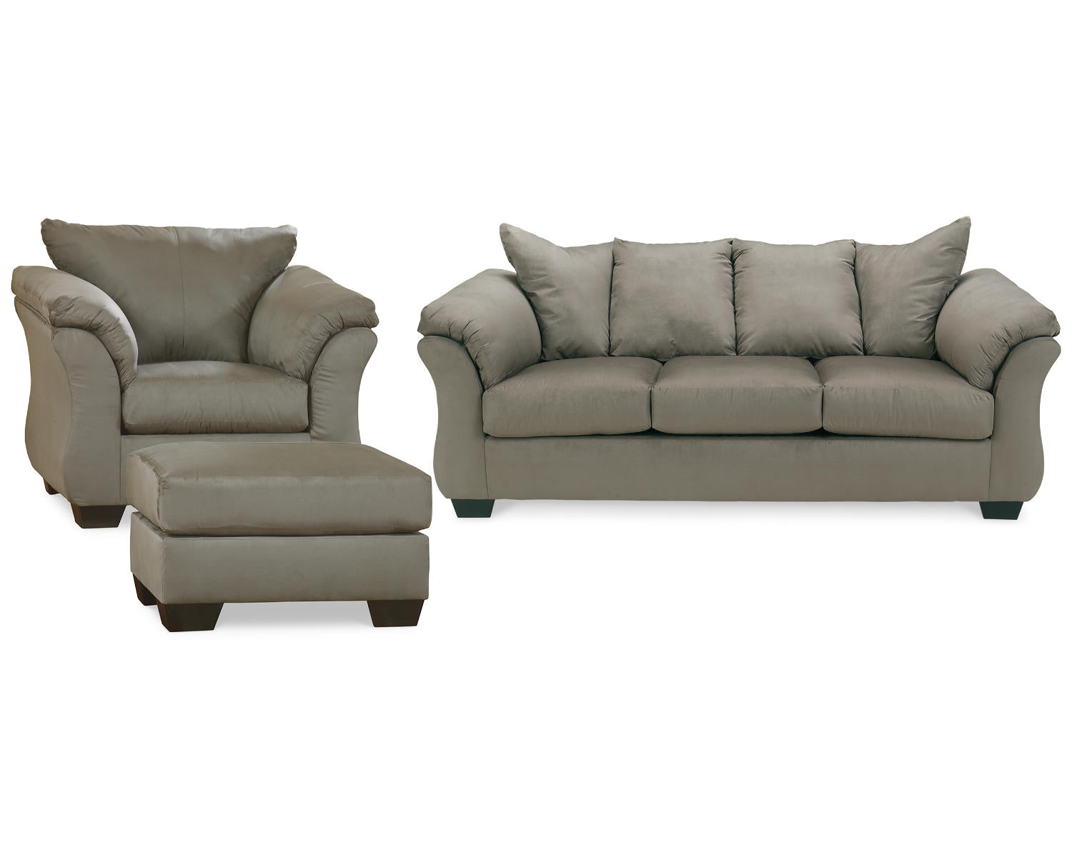 Introducing the Darcy Sofa, Chair and Ottoman in Cobblestone—an all-in-one living room set designed for everyday comfort and timeless style. Perfect for modern homes and busy households, it offers cohesive seating that adapts to your space. The Cobblestone finish provides a versatile, neutral tone that complements a range of décors.