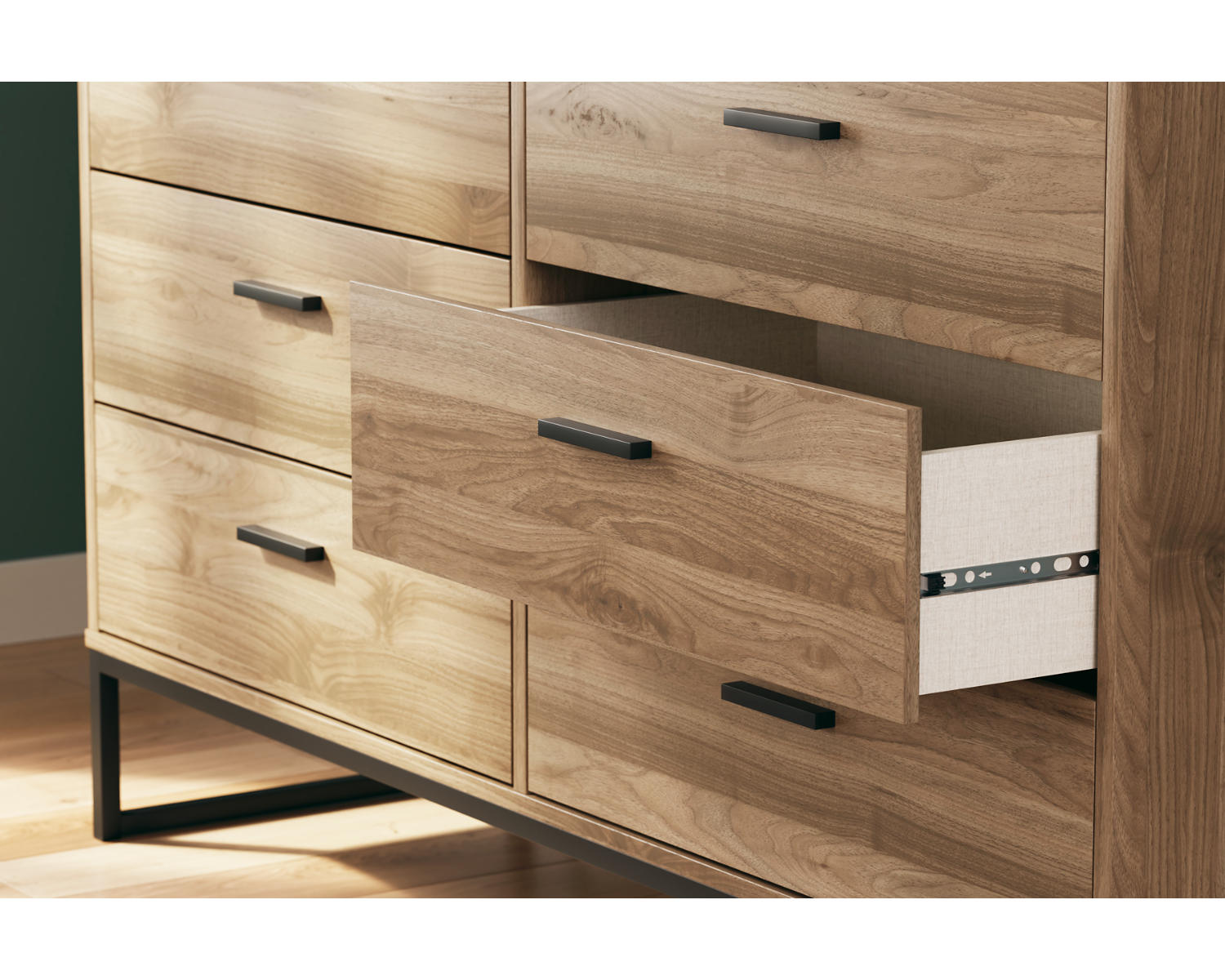 Meet the Deanlow Dresser—a six-drawer storage solution designed for bedrooms that value order and warmth. The honey finish brings a welcoming glow to any space, while clean lines ensure a timeless, versatile look.