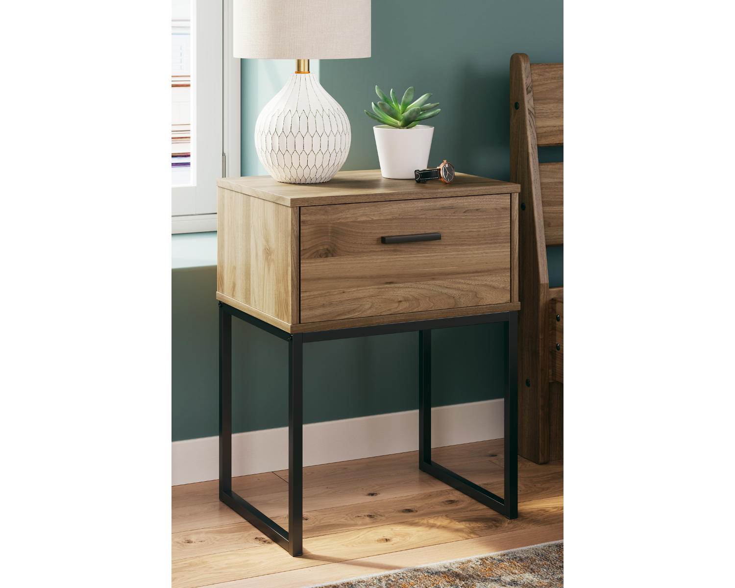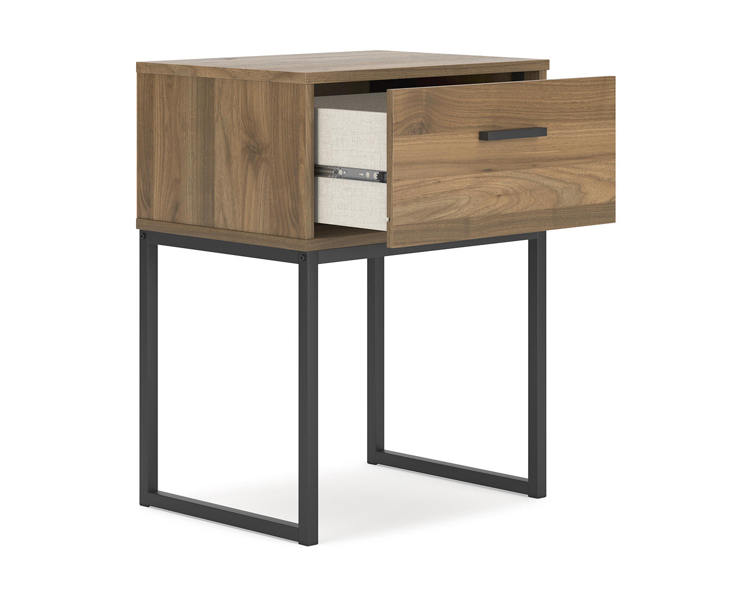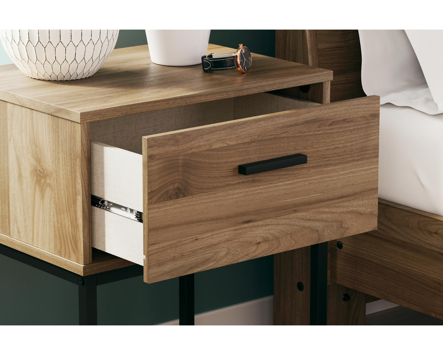 The Deanlow Nightstand is a compact, one-drawer bedside table finished in a warm honey tone. It’s designed for small spaces and bedrooms that value clean lines and practical storage. This nightstand pairs everyday function with timeless style to fit a range of decors.