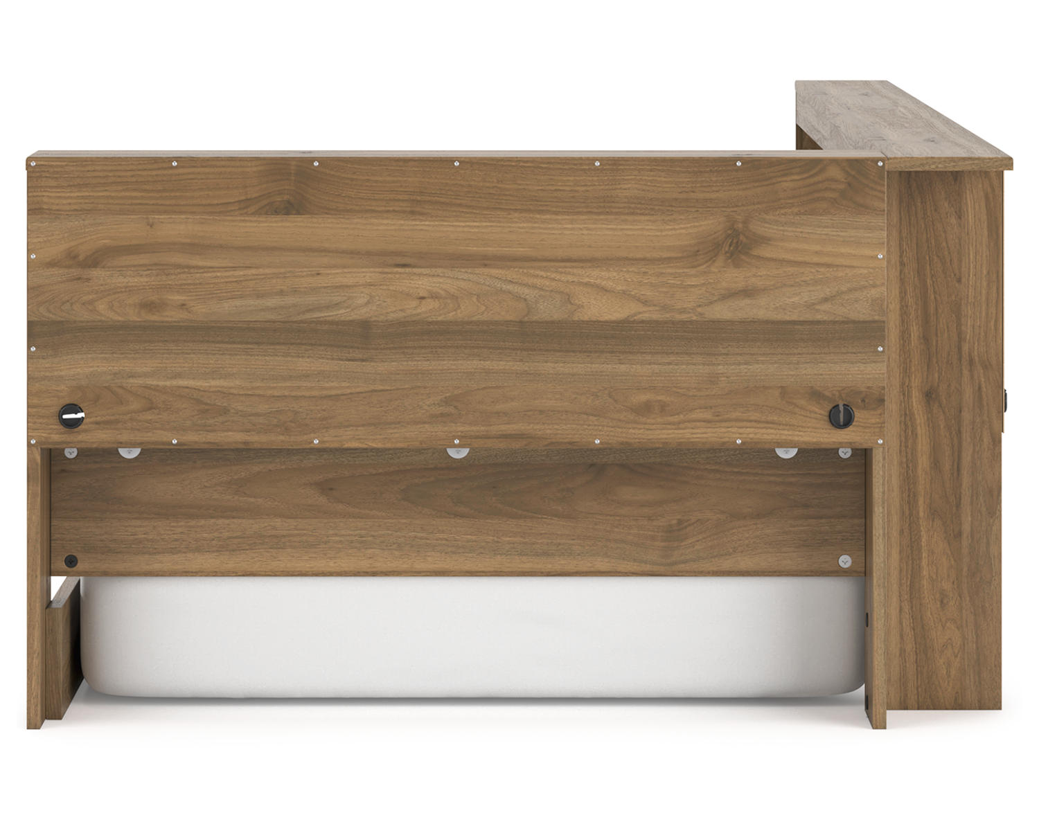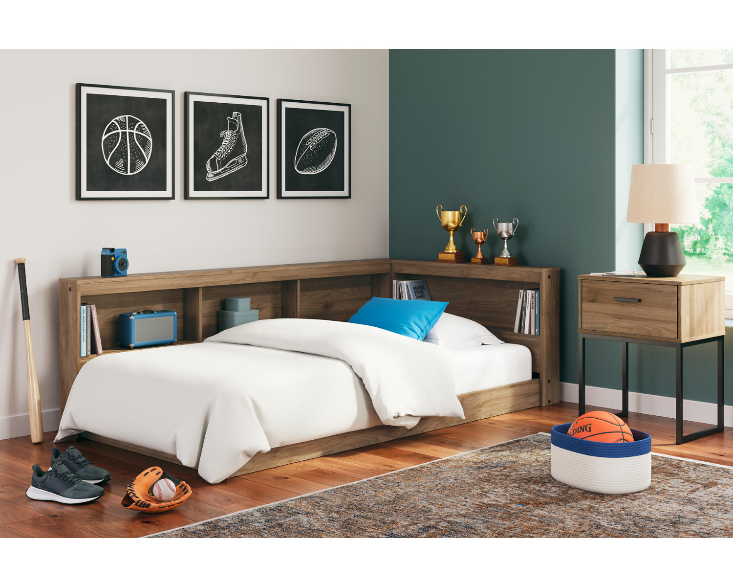 Meet the Deanlow Twin Bookcase Storage Bed in a warm honey finish. This compact bed combines sleeping space with integrated storage, making it an ideal choice for smaller bedrooms, kids’ rooms, or guest spaces. It’s designed to simplify room organization without sacrificing style.