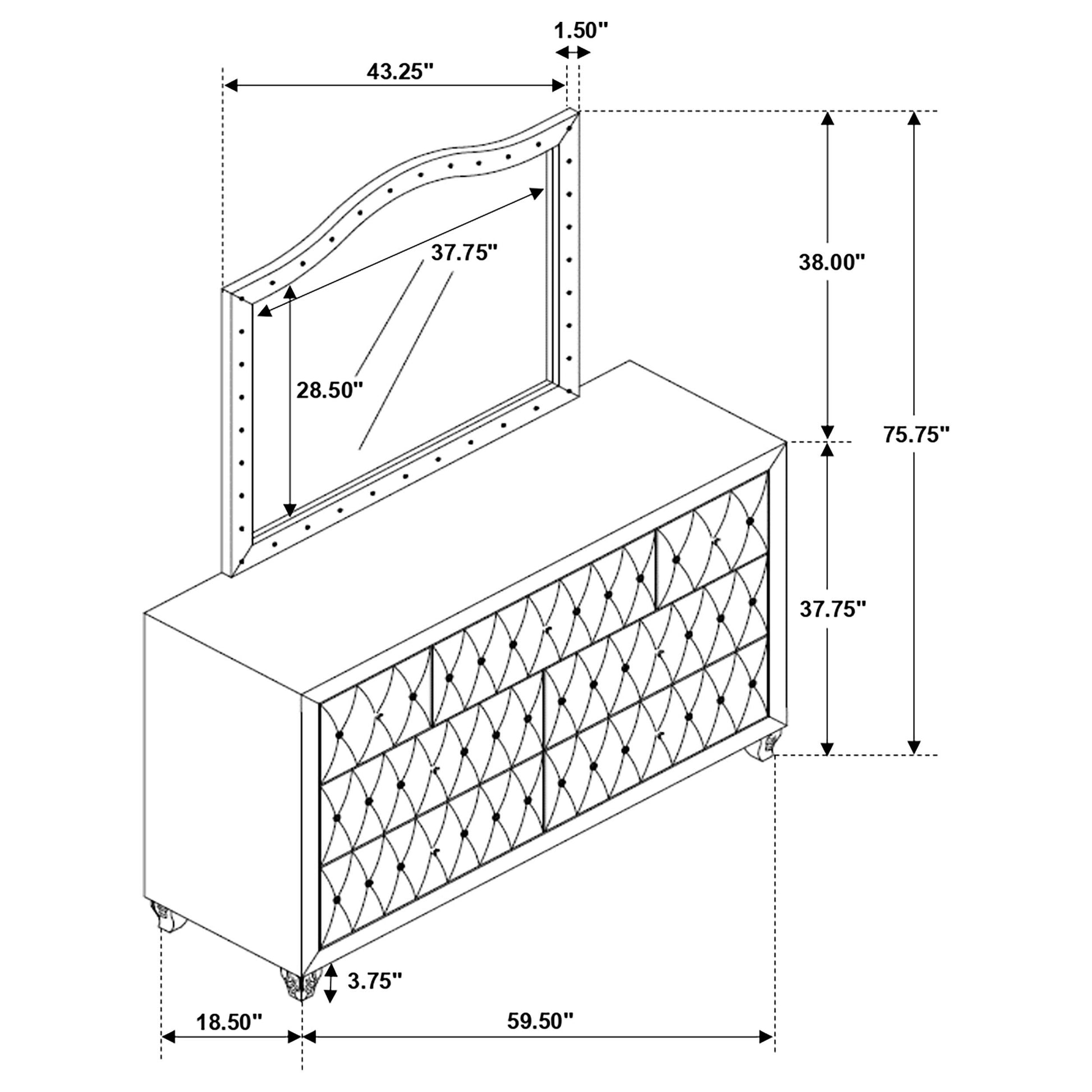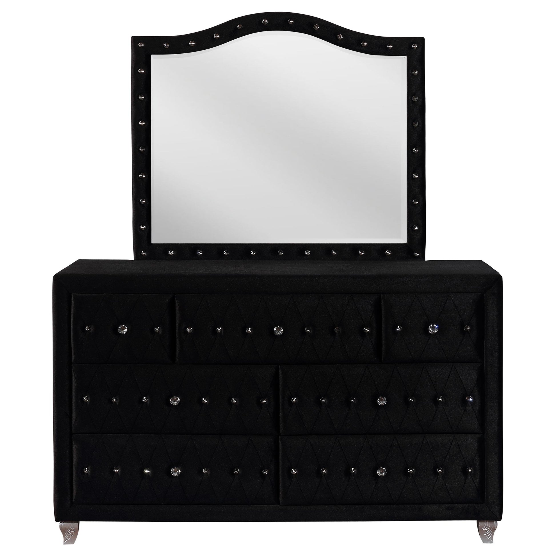 Deanna 7-drawer Upholstered Dresser with Mirror Black