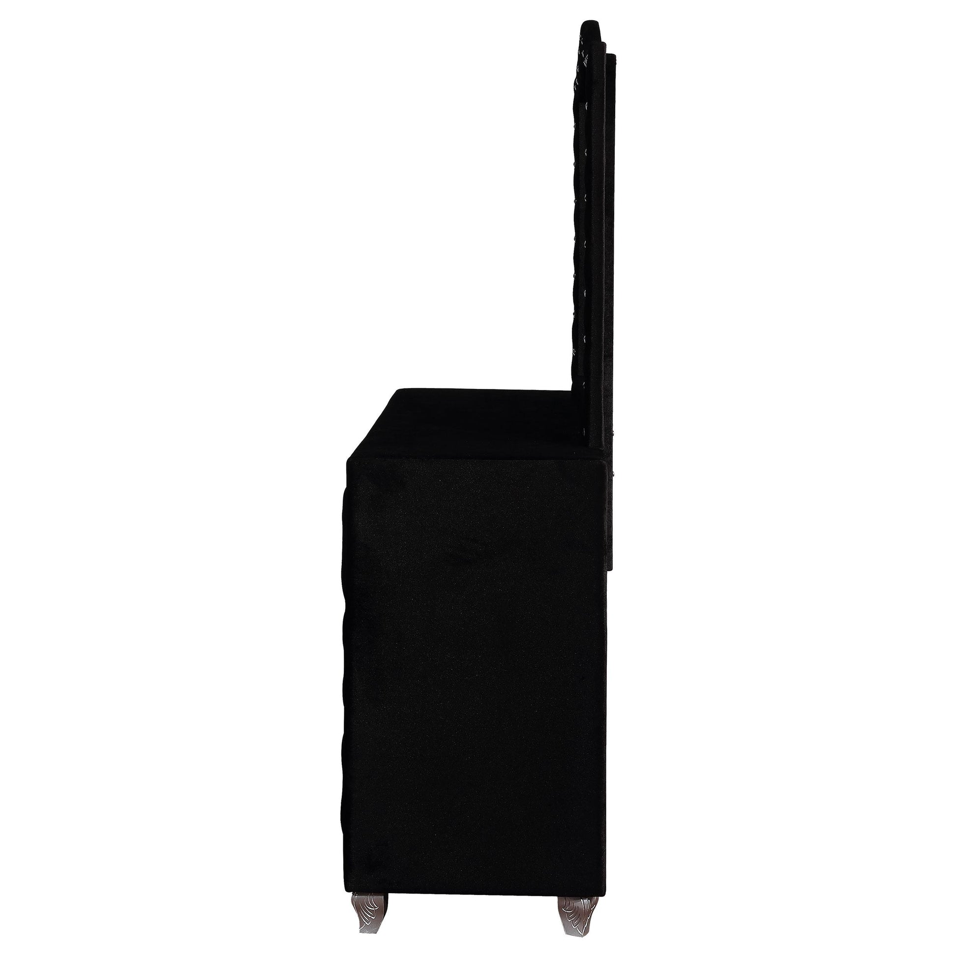 Meet the Deanna 7-drawer Upholstered Dresser with Mirror in Black — a stylish storage solution designed for bedrooms that value organization and refinement. This piece combines seven roomy drawers with an integrated mirror to streamline getting ready and keep essentials within reach. Its clean silhouette and versatile black finish complement modern, transitional, and traditional aesthetics.