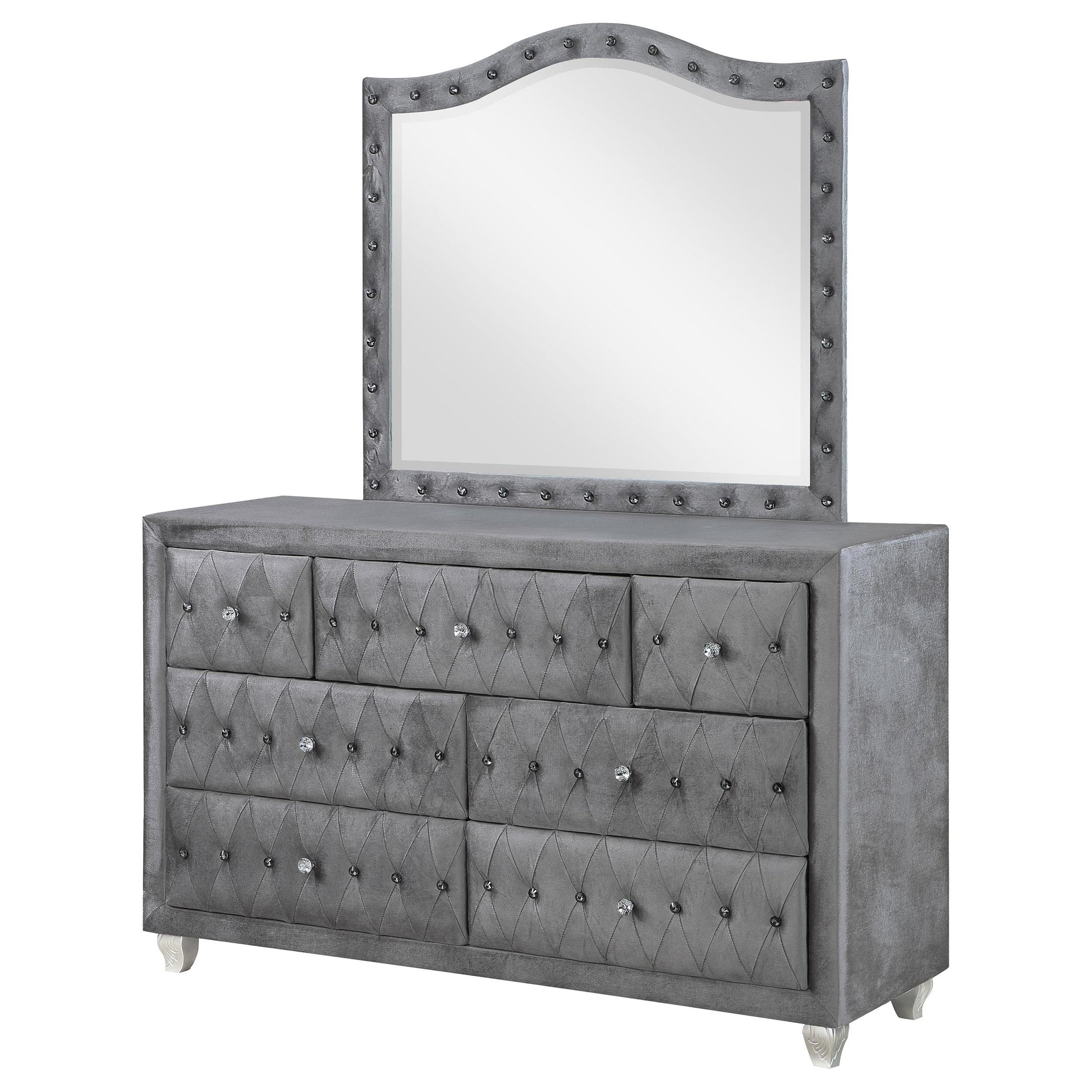 Deanna 7-drawer Upholstered Dresser with Mirror Grey