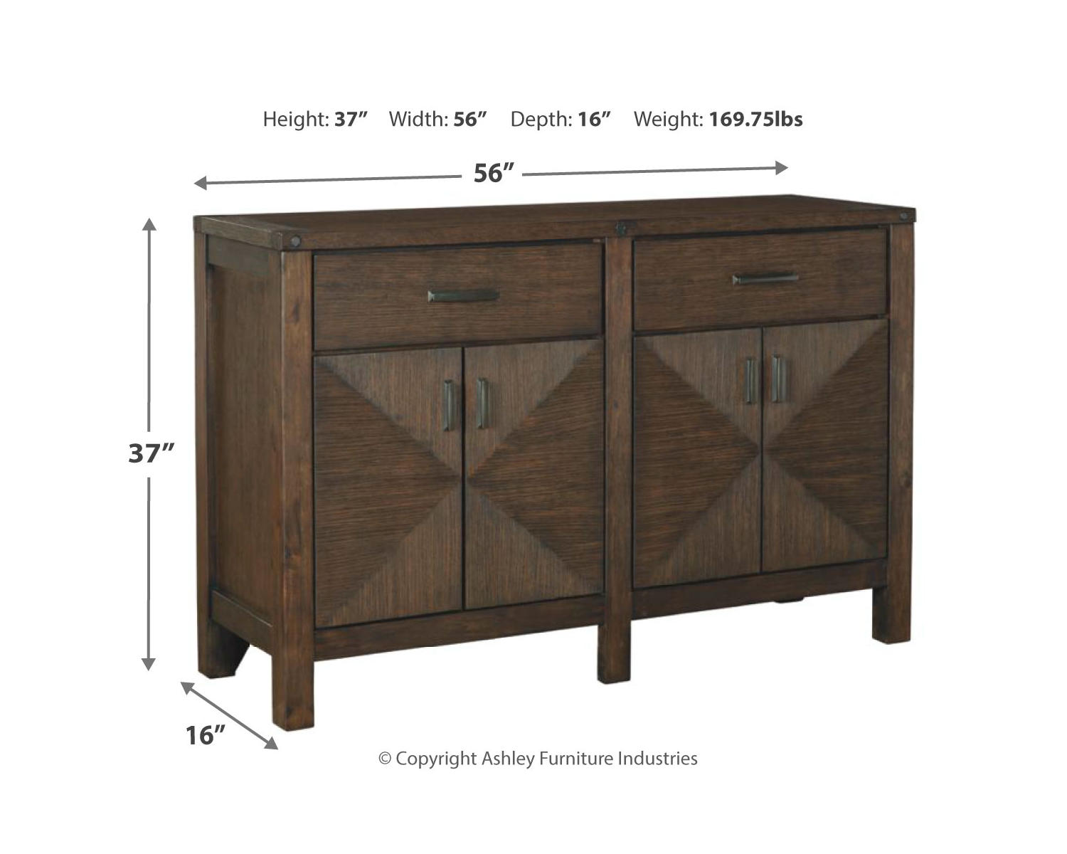 - Server for extra storage and a dedicated space for dinnerware and linens