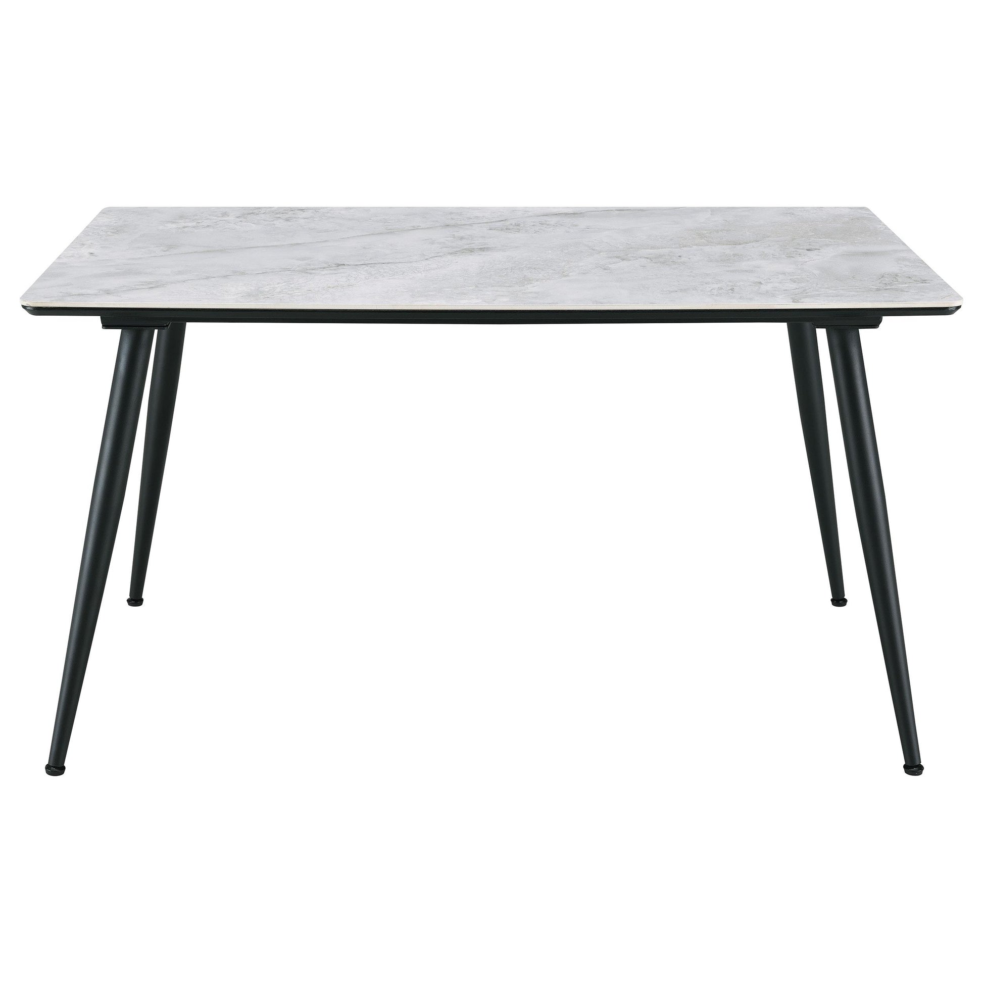 - Rectangular table with a streamlined silhouette that fits in most dining areas.