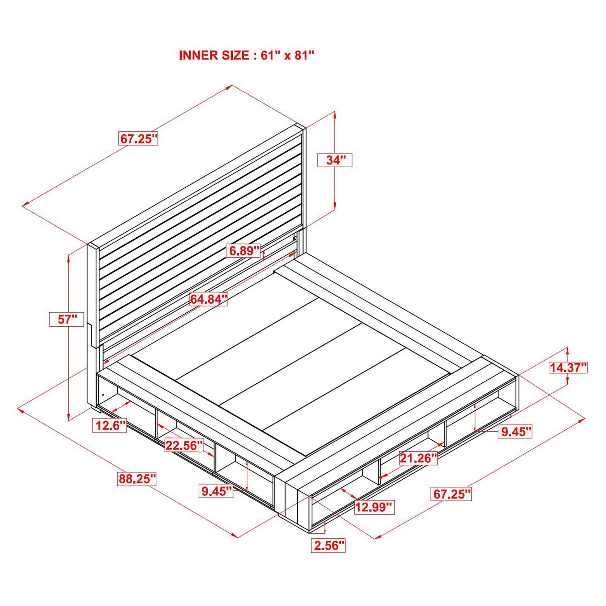Derbyshire Wood Queen Storage Panel Bed Grey Oak