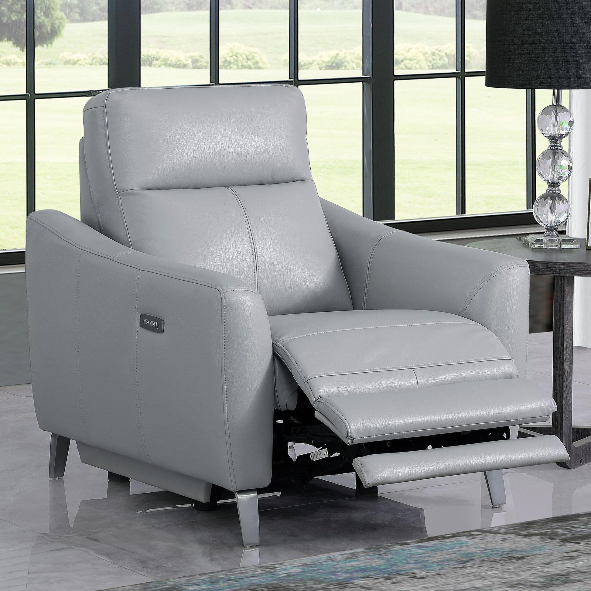 Derek Upholstered Power Recliner - Light Grey