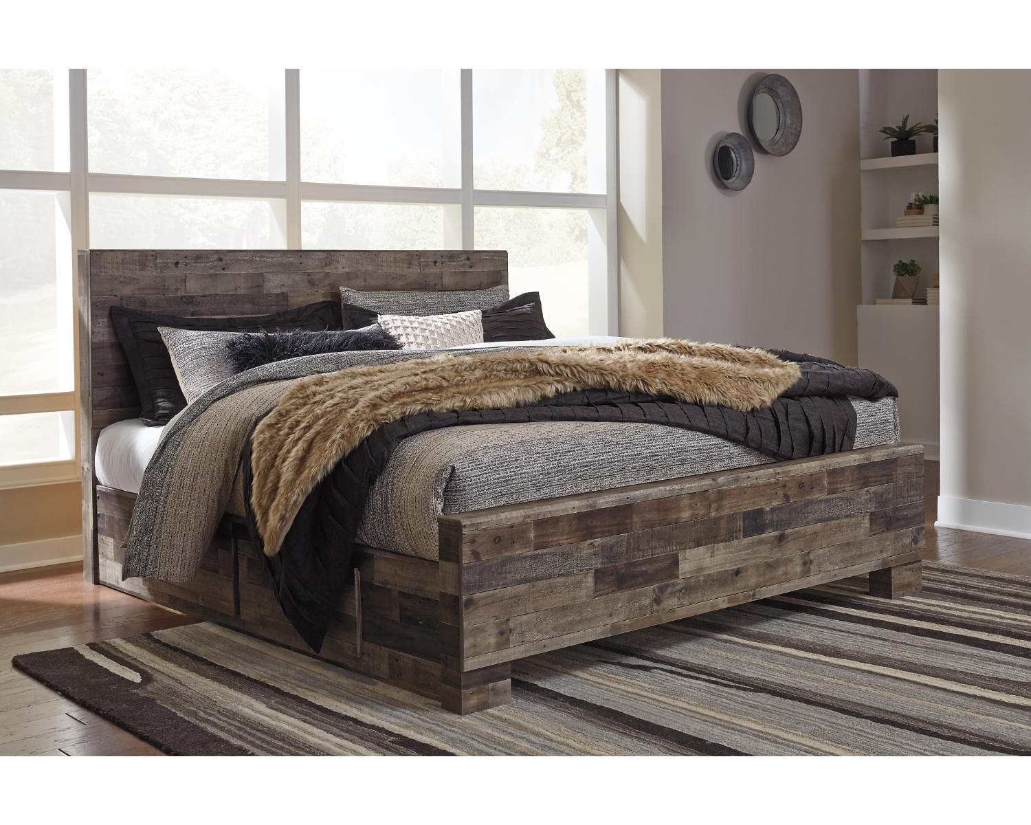 Derekson King Panel Bed with 2 Side Storage — Multi Gray