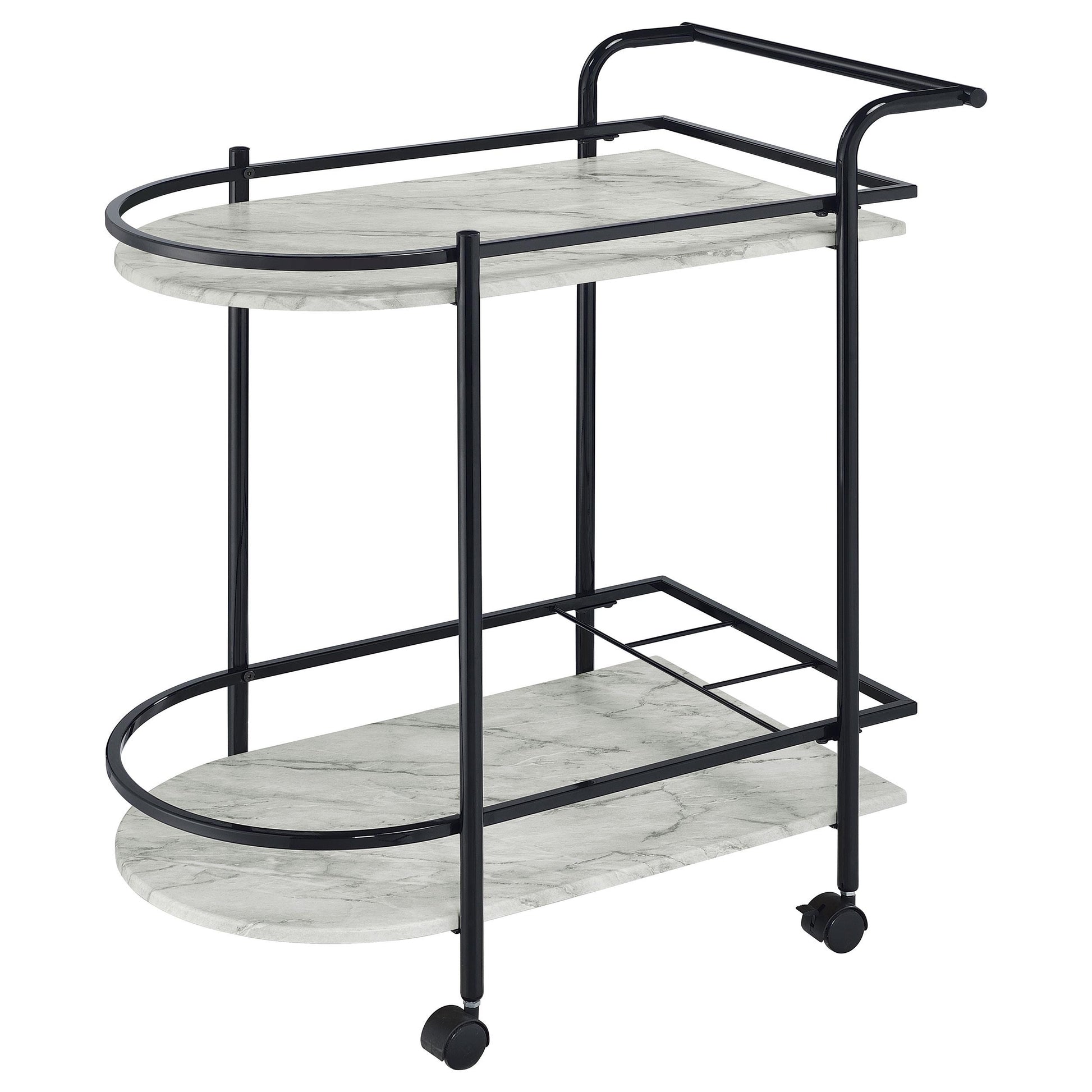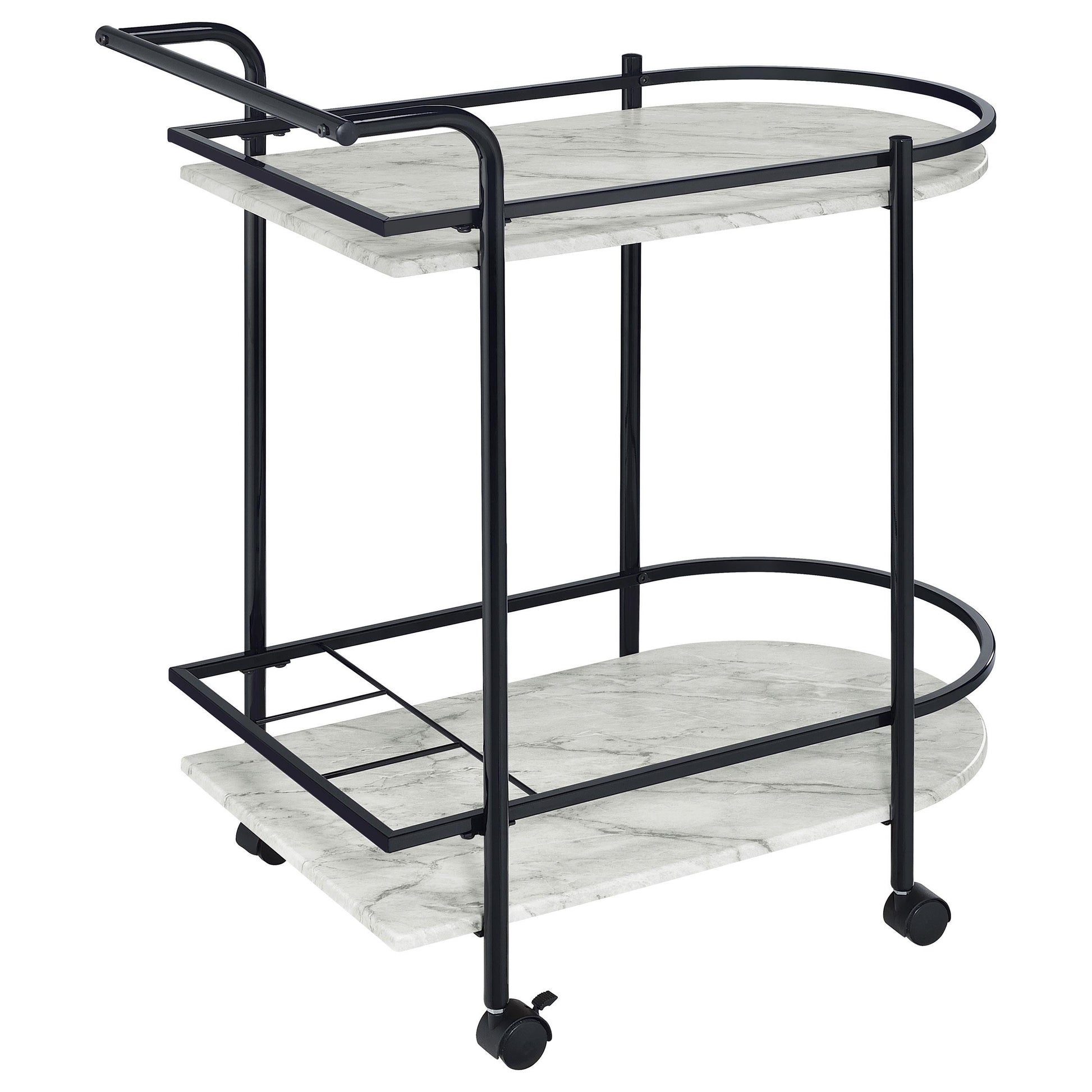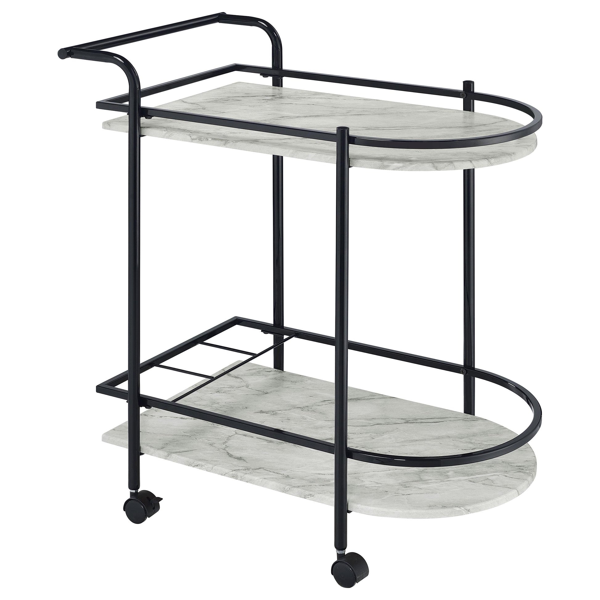 Desiree 2-tier Faux Marble Shelf Metal Bar Cart Black