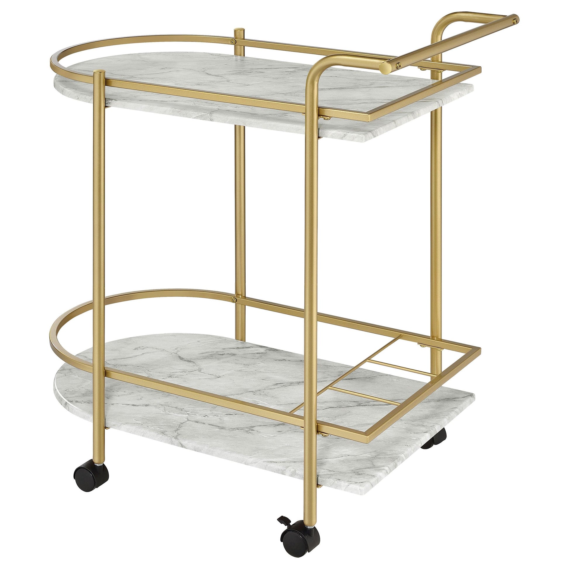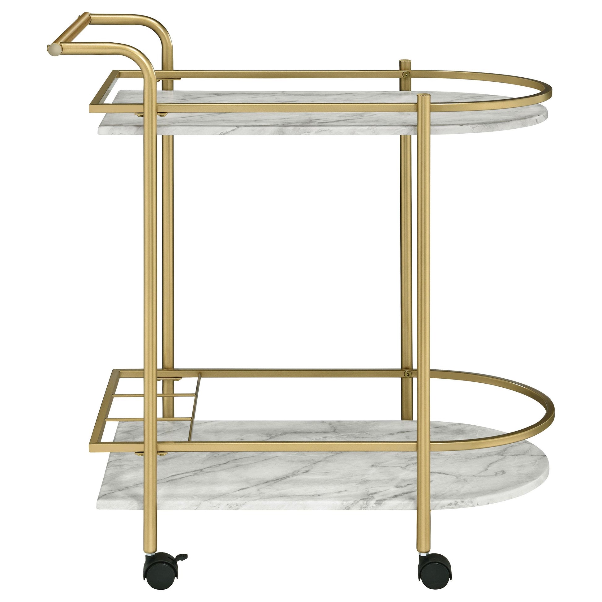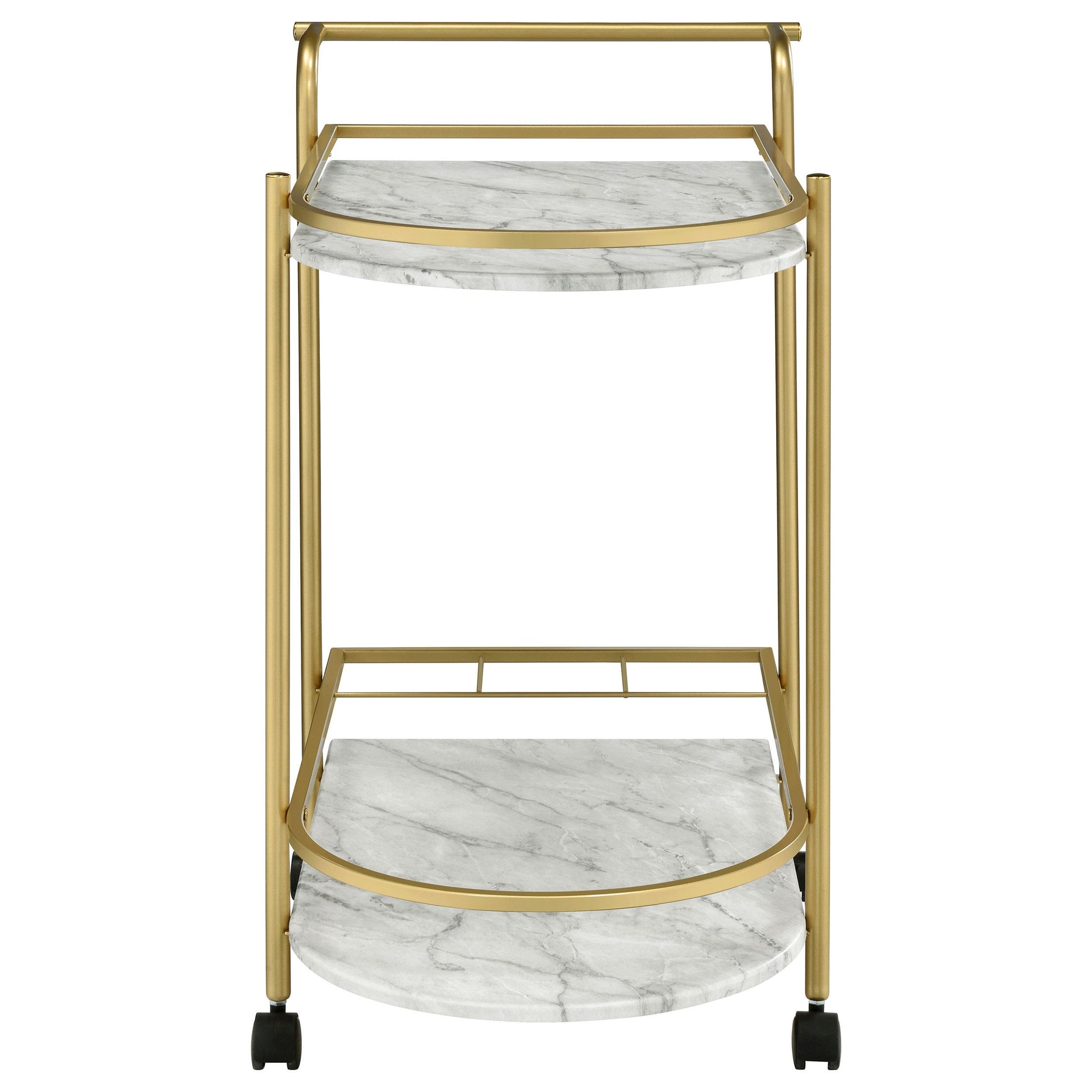 Desiree 2-tier Faux Marble Shelf Metal Bar Cart Gold