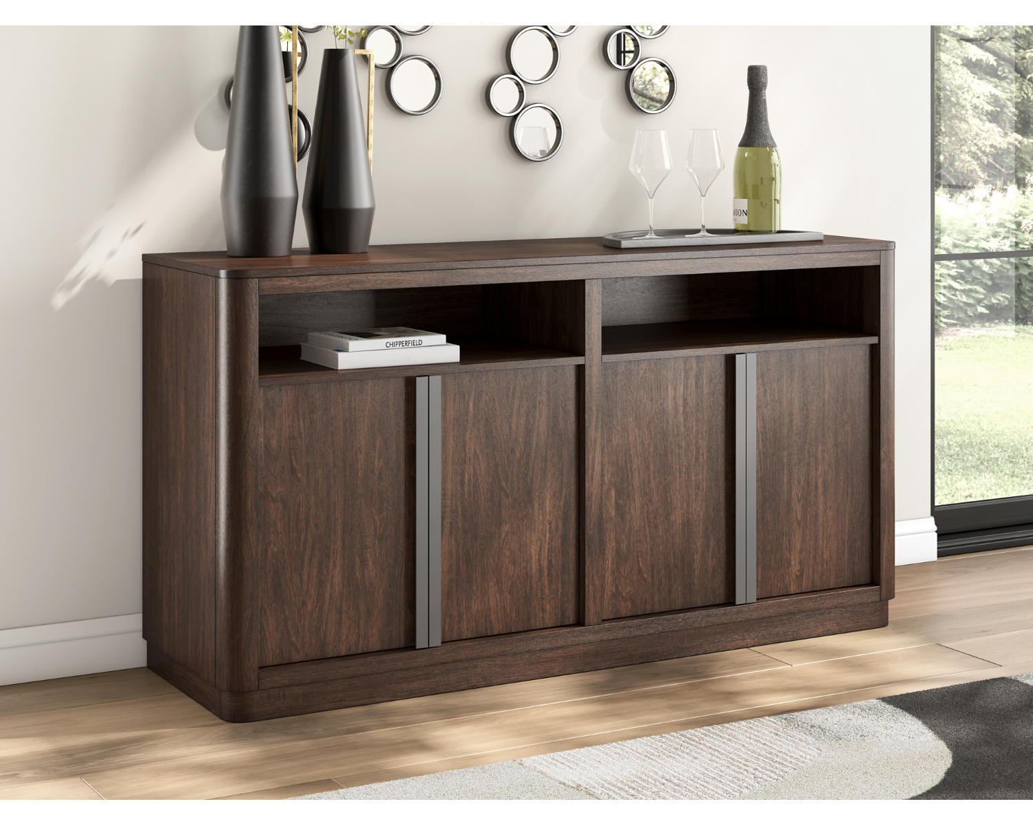 The Dilenno Dining Server brings generous storage and a refined finish to any dining room. It’s perfect for entertaining families who value organization and style. Finished in a rich dark brown, it complements a wide range of decors—from contemporary to traditional.