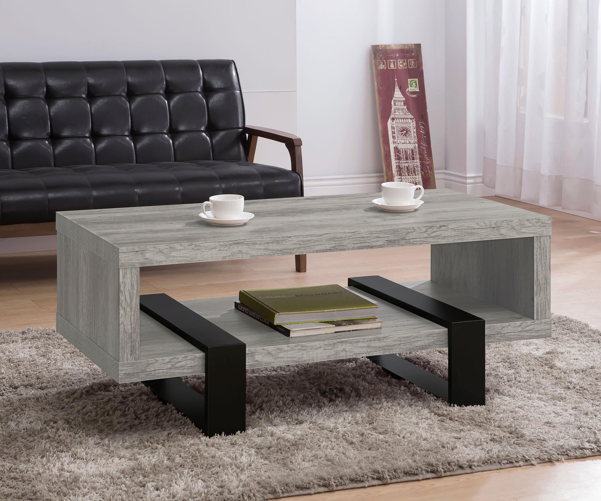 Enhance your living area with a table that offers both style and practicality—the Dinard Engineered Wood Coffee Table in Grey Driftwood.