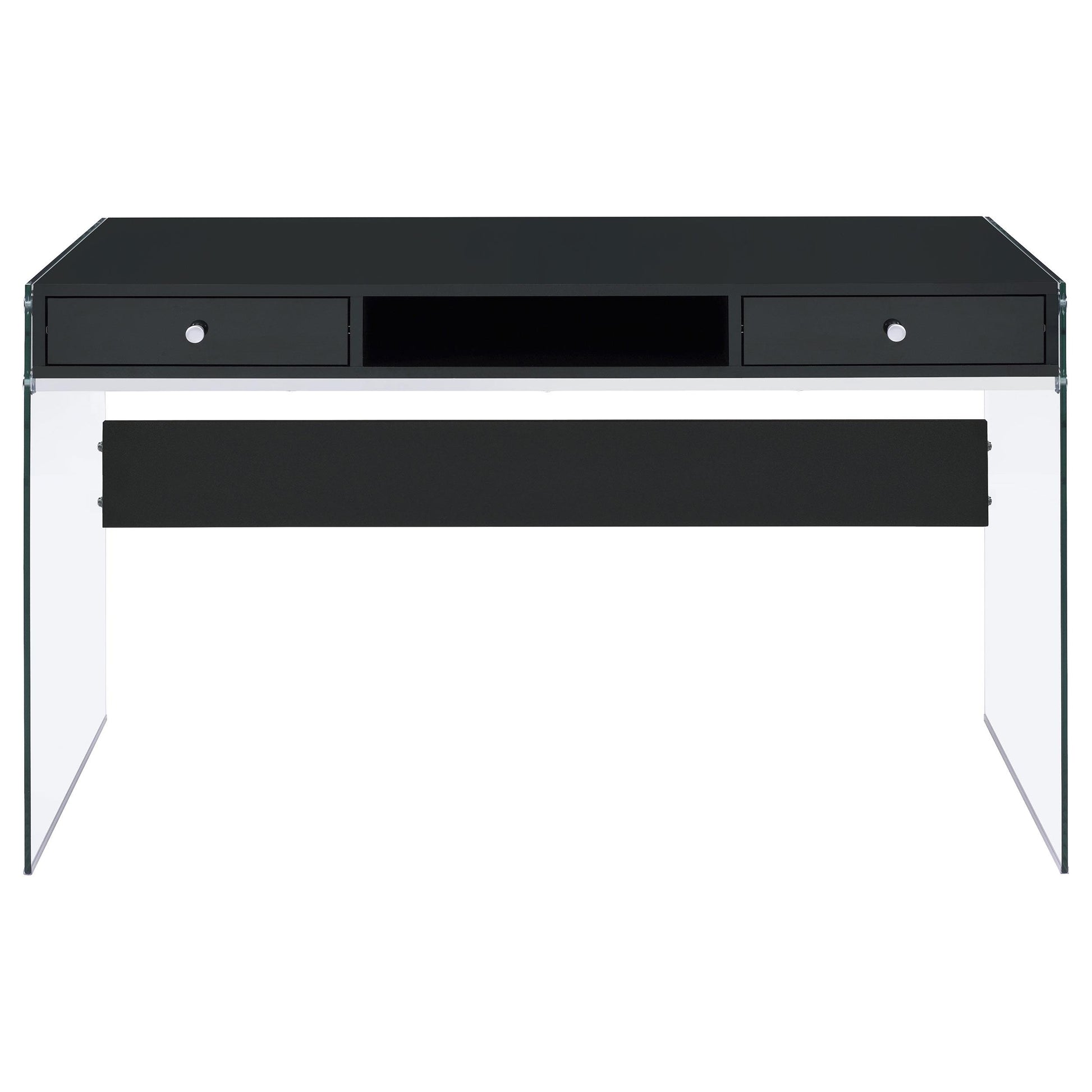 Dobrev 2-drawer Writing Desk Glossy Black and Clear