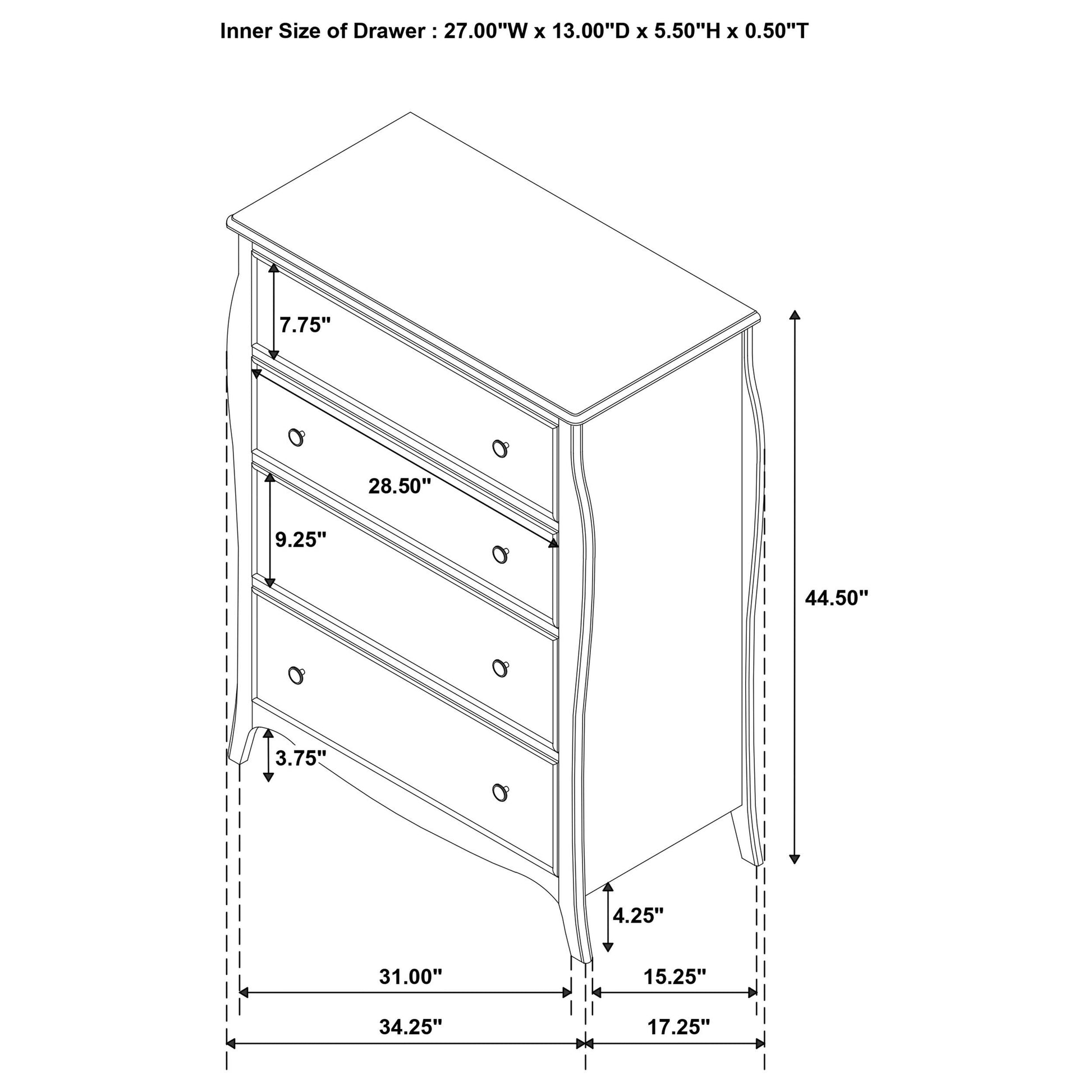 - Four drawers: generous storage to keep outfits and small items neatly organized.
