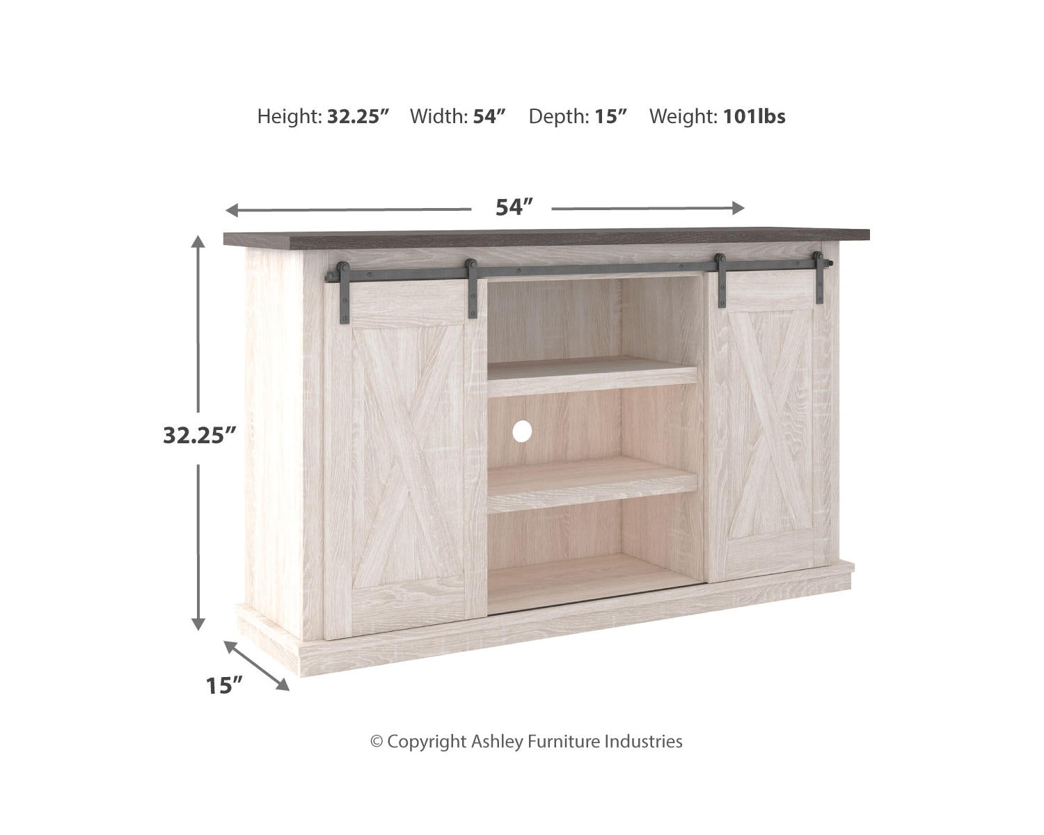 Introducing the Dorrinson 54" TV Stand—a medium-sized media console built to anchor living rooms and home theaters. Designed to support TVs up to 54 inches, it pairs a clean silhouette with a versatile two-tone finish that complements a wide range of decors. This stand provides practical storage and a stylish, low-profile presence you can rely on daily.