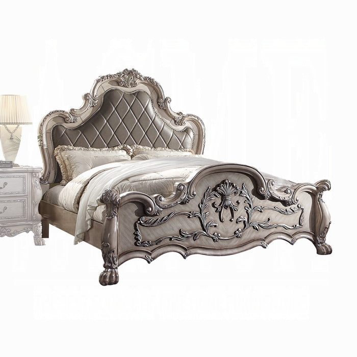 Elegant yet lightheartedly playful, Dresden brings Rococo-inspired charm to any bedroom. Finished in Vintage Bone White with a hand-applied burnish, each piece gains depth from multiple layers of stains and finishes rubbed by hand. This bed blends timeless ornament with approachable warmth, creating a versatile centerpiece for traditional and contemporary spaces alike.