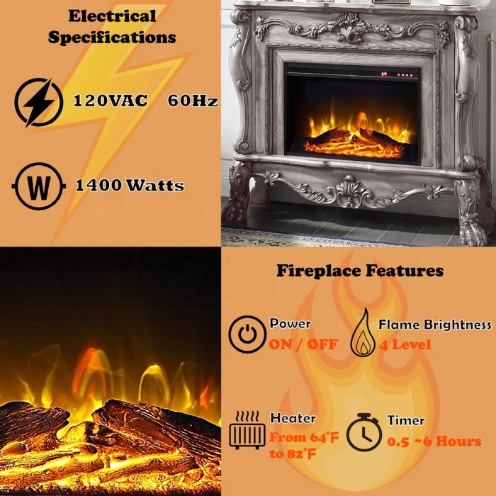 Add warmth and comfort to any room in your home with the impressive Dresden fireplace in a vintage bone white finish. The grand fireplace features floral moldings throughout the piece, sitting on carved claw feet for added elegance. The fireplace features a touch panel, remote control, and a timer function for easy operation.