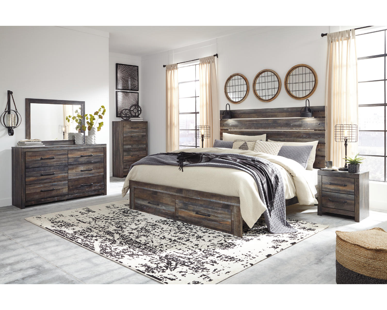 Meet the Drystan King Panel Bed with 2 Storage Drawers—a timeless centerpiece that blends classic panel styling with practical storage. Built to fit a king-size mattress, it includes two built-in storage drawers to help keep essentials close at hand. With clean lines and a versatile silhouette, this bed works well in master suites or guest bedrooms while offering dependable everyday use.