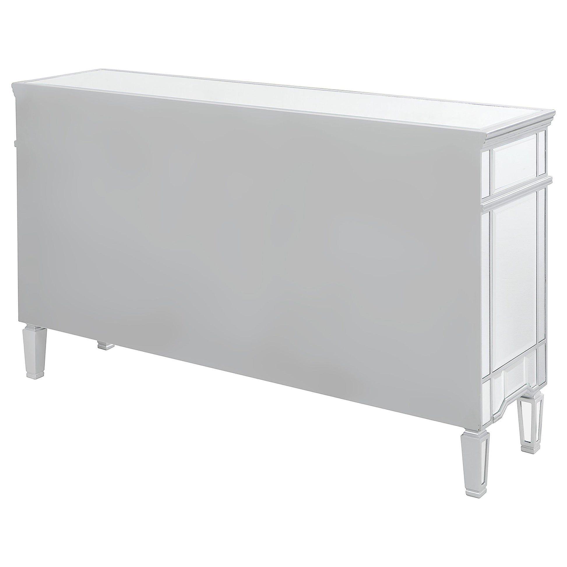 Elevate your space with the Duchess 5-drawer Mirrored Storage Accent Cabinet in Silver. This stylish storage piece blends reflective surfaces with practical organization, making it ideal for living rooms, bedrooms, or entryways. It offers ample hidden storage while adding a bright, glamorous focal point to any decor.