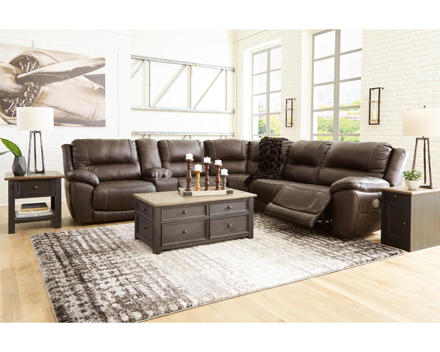 Meet the Dunleith 6-Piece Power Reclining Sectional in chocolate—a modular, family-friendly seating centerpiece that blends comfort with contemporary style. With effortless, touch-of-a-button reclining and a warm cocoa upholstery, it's designed to adapt to your space and routine.