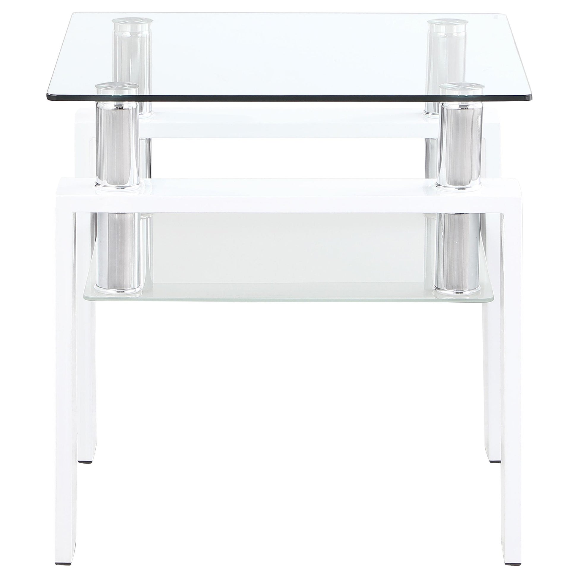 Meet the Dyer 1-shelf Square Glass Top Side End Table in White. This compact, modern piece is designed for living rooms, bedrooms, or entryways, offering a clean surface and a practical lower shelf. With a square glass top and a white frame, it combines versatile functionality with understated elegance.