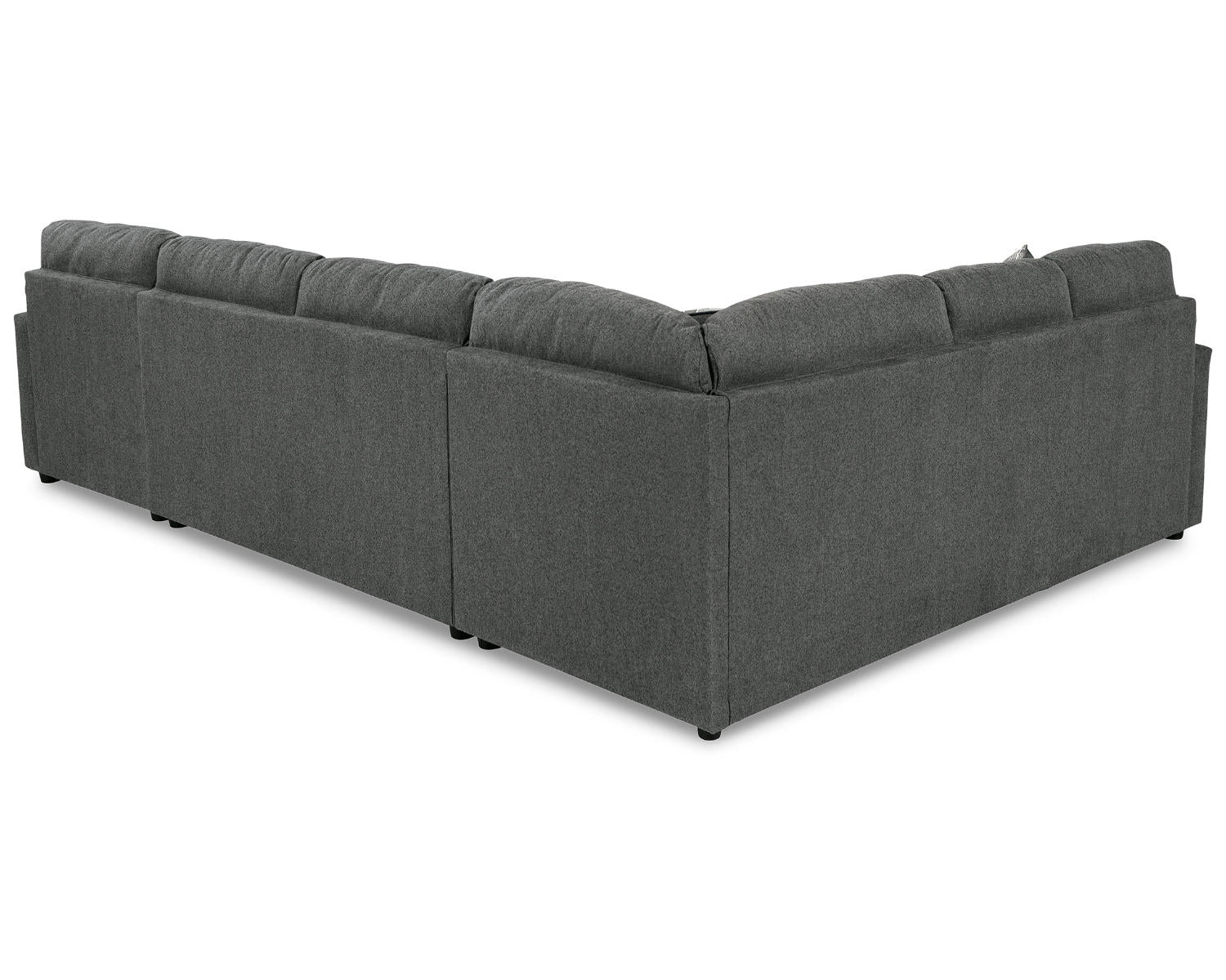 Meet Edenfield—a versatile 3-piece sectional with chaise designed to bring flexible seating and modern style to your living room. The charcoal color complements a wide range of décors, making it easy to pair with existing furniture. This piece is ideal for families, roommates, or anyone who values both comfort and adaptability.