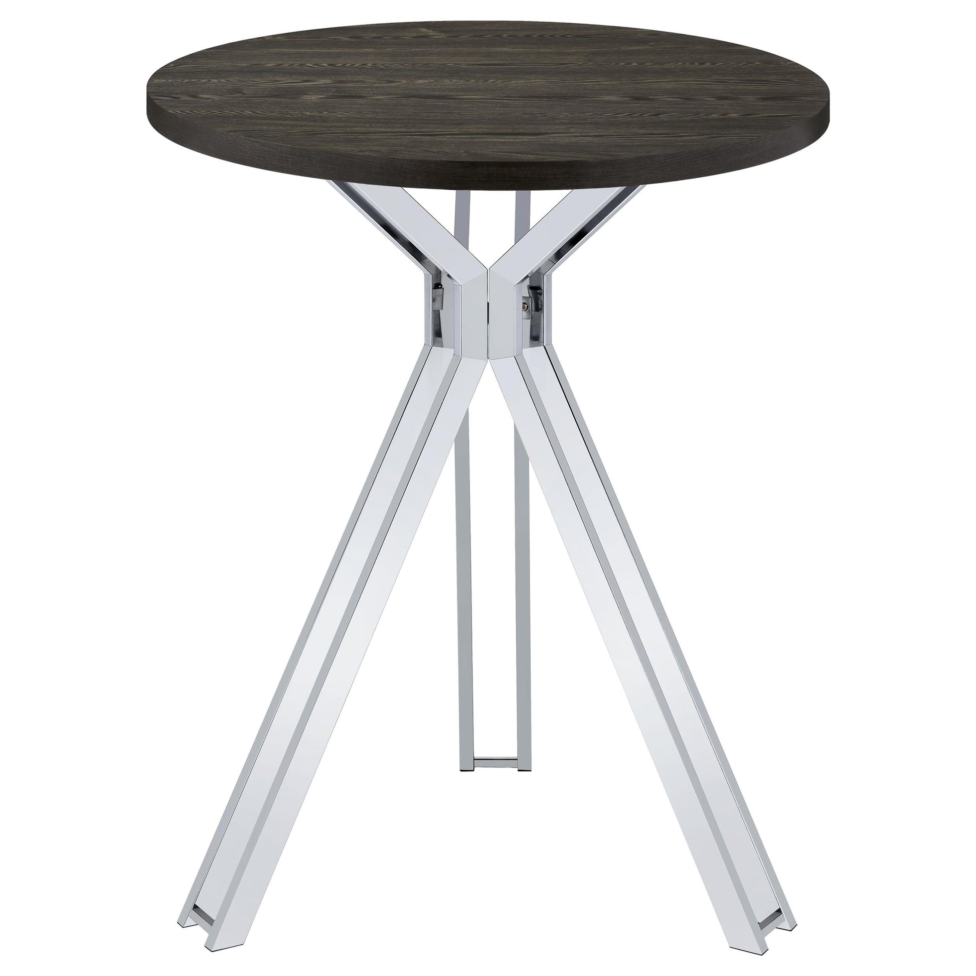 The round, 35-inch top invites conversation, while the pub-height design elevates the experience for standing or seated gatherings. Its classic dark oak veneer provides a timeless look that blends with modern or traditional spaces alike.