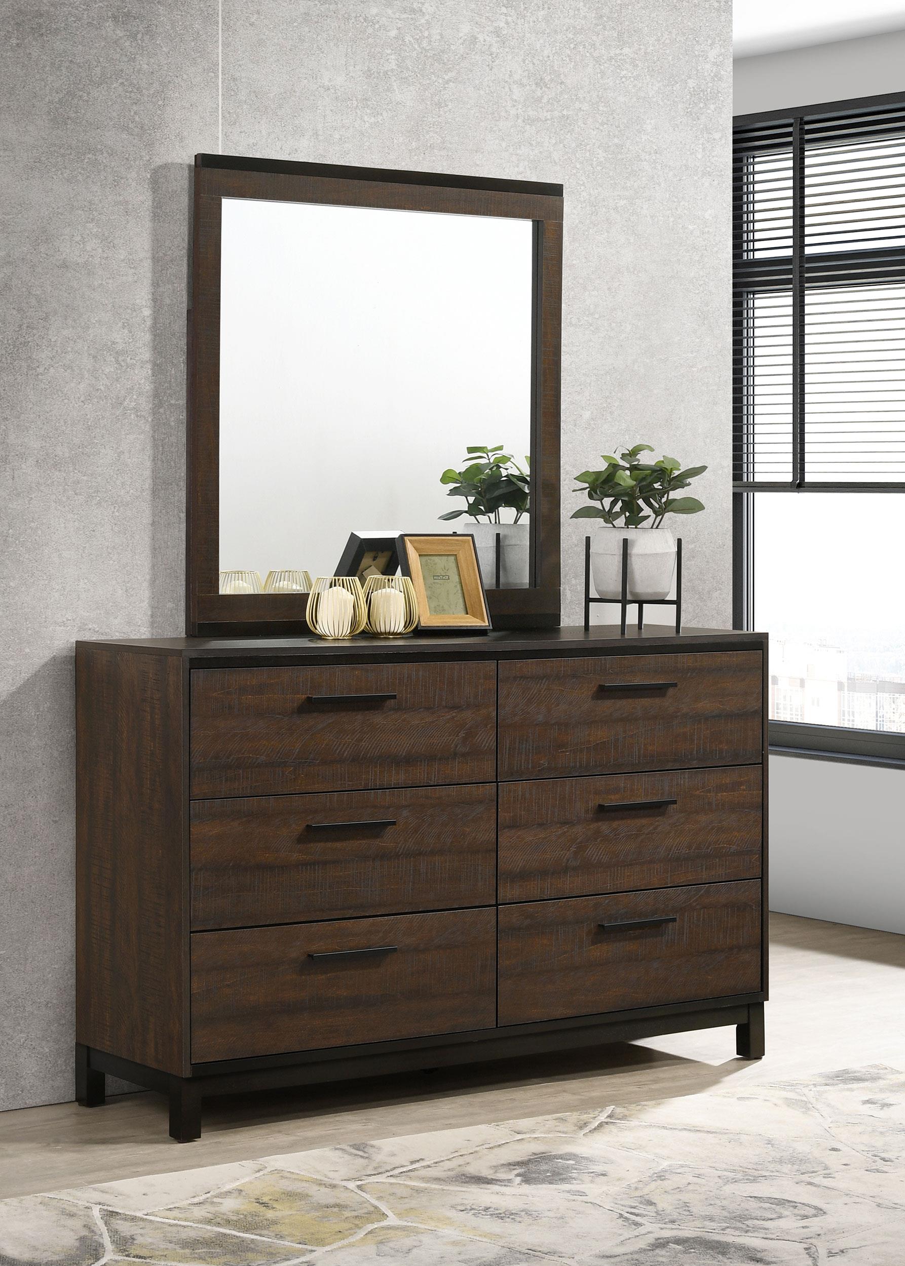 Edmonton 6-drawer Dresser with Mirror Rustic Tobacco