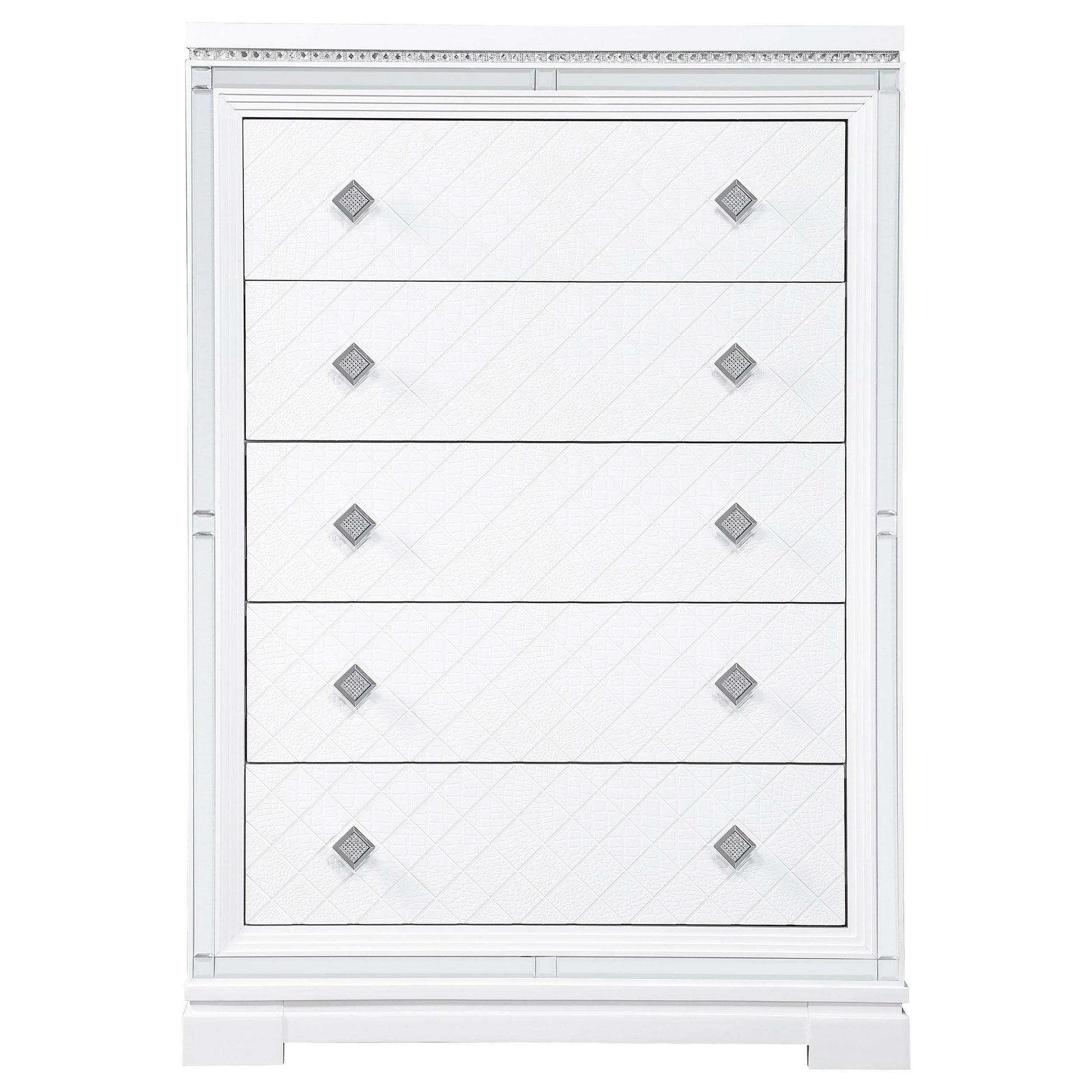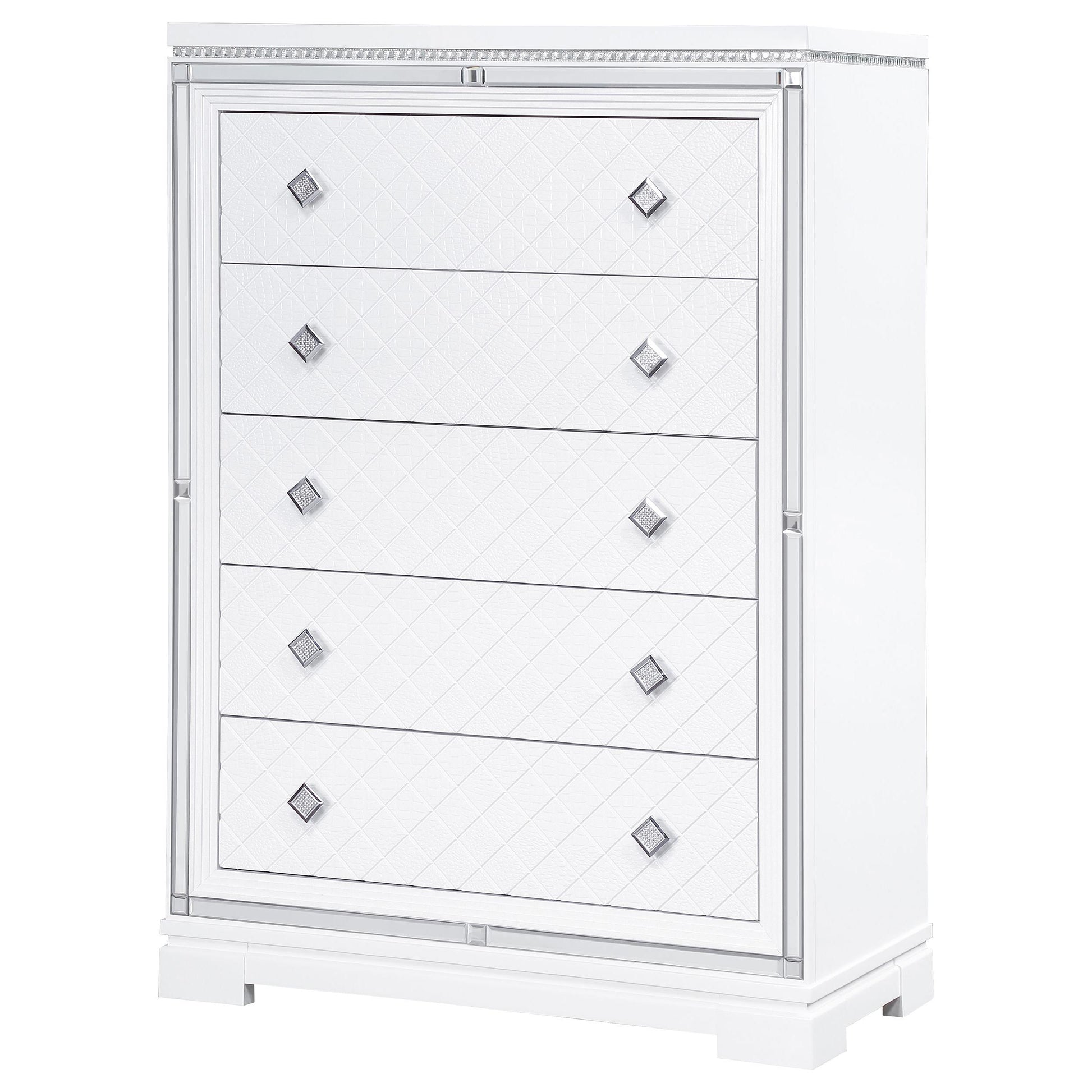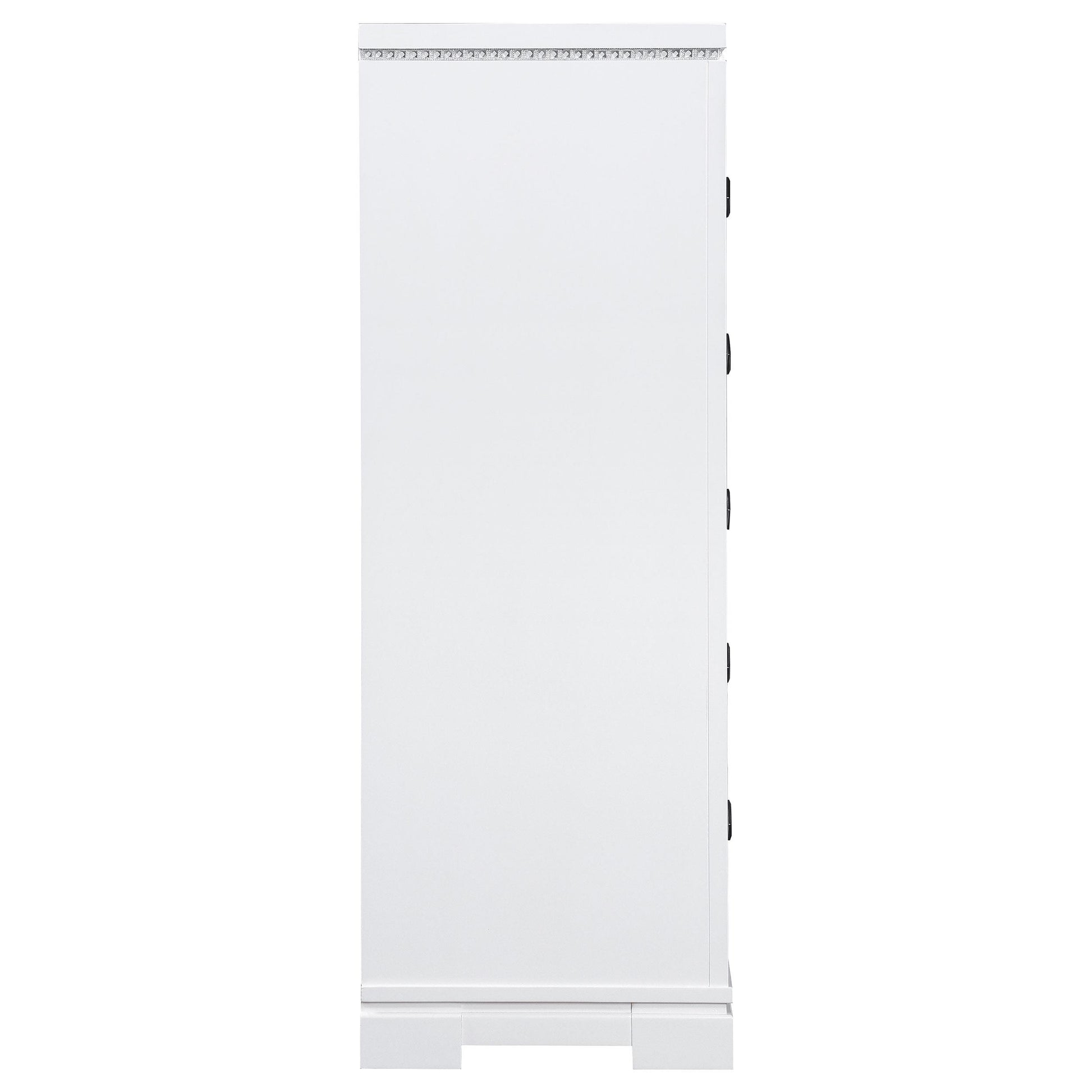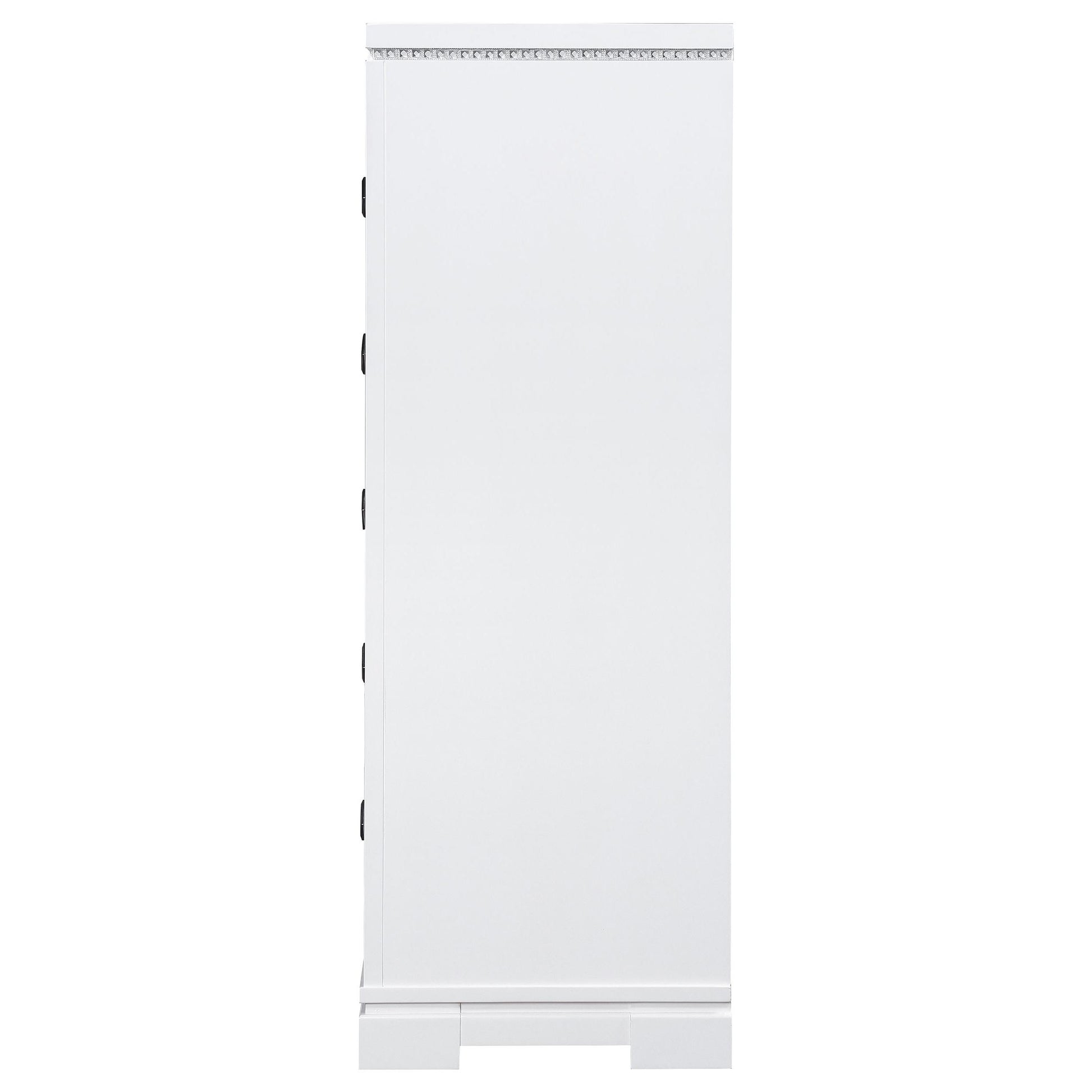 Meet the Eleanor 5-Drawer Bedroom Chest in White—a practical storage solution for tidy bedrooms. Ideal for dorm rooms, guest rooms, or master suites, it combines clean lines with spacious drawers to keep clothes and accessories organized.