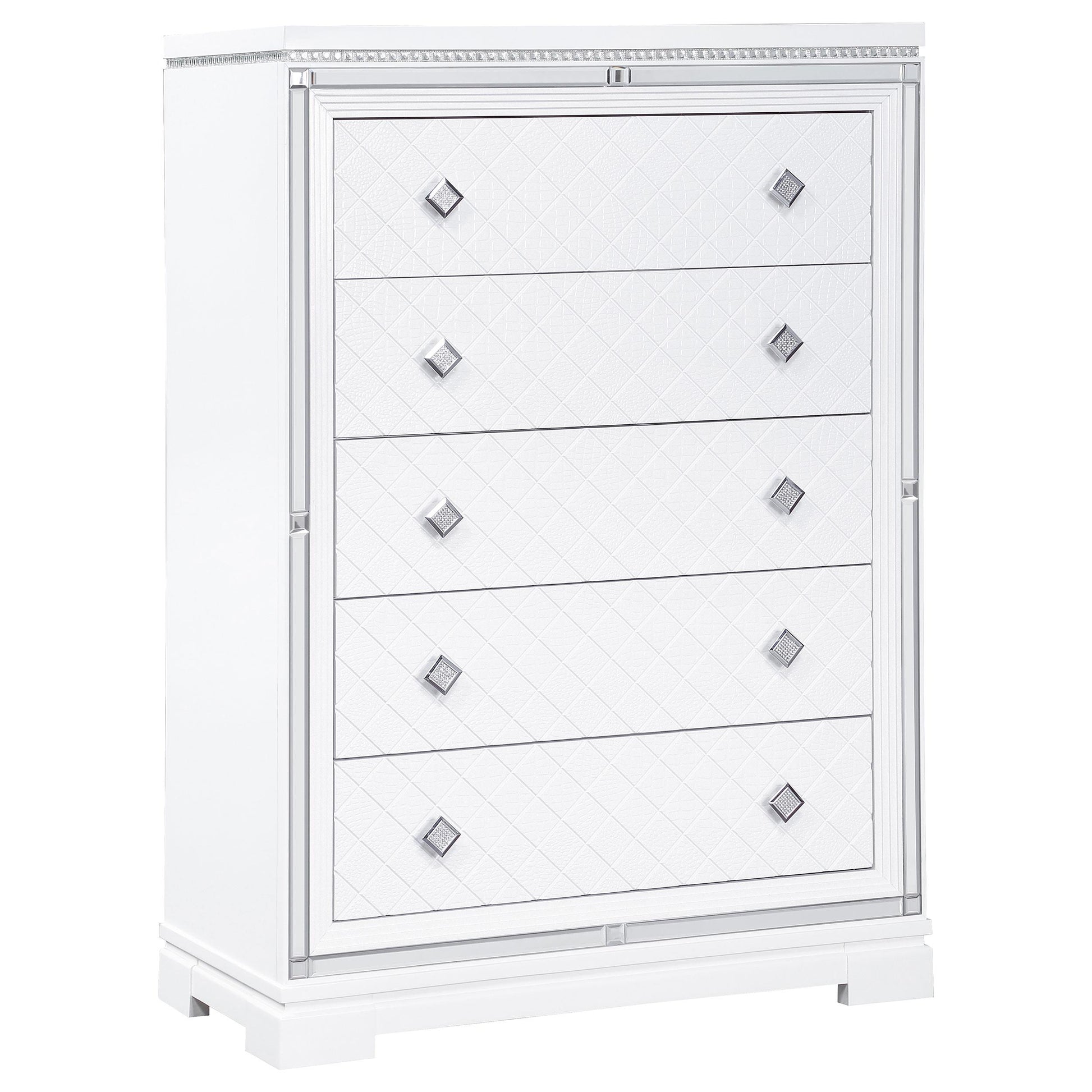 Designed to endure everyday use, this set emphasizes durability through solid joinery and dependable hardware. The white finish maintains a crisp appearance over time, helping your bedroom stay looking fresh. Priced to offer strong value within its category, the Eleanor 5-piece California King Bedroom Set provides a cohesive, affordable path to a stylish, ready-to-enjoy space.