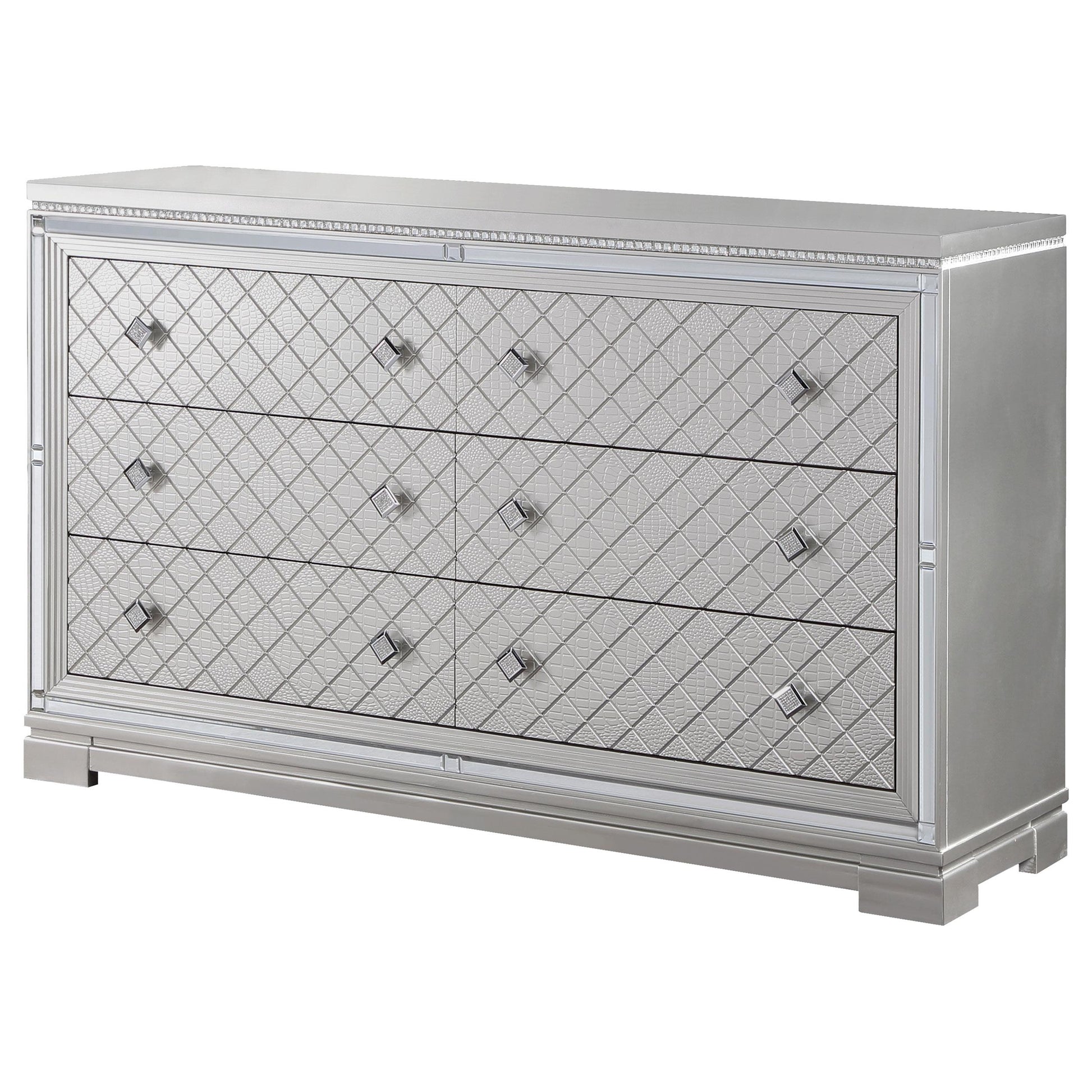 Meet Eleanor, a six-drawer dresser finished in Metallic Mercury that adds a touch of contemporary elegance to any bedroom. Designed for anyone who values organized storage and a refined look, this dresser blends practical capacity with sleek styling.