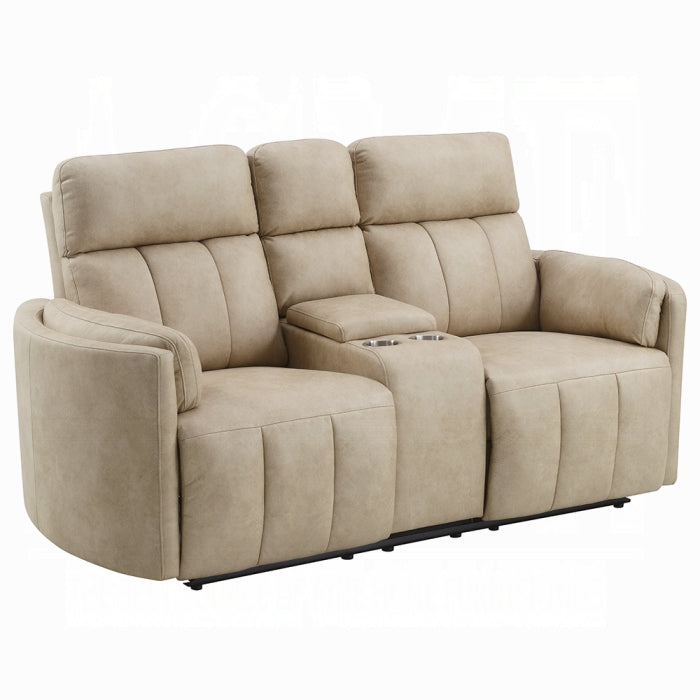 Meet the Elison Motion Loveseat with Console—a versatile seating option designed for living rooms, family rooms, or home theaters. It blends a contemporary dark beige microfiber finish with practical motion seating and a built-in console, keeping remotes, drinks, and essentials close at hand. Built for everyday use, this loveseat offers comfort with reliability and style.