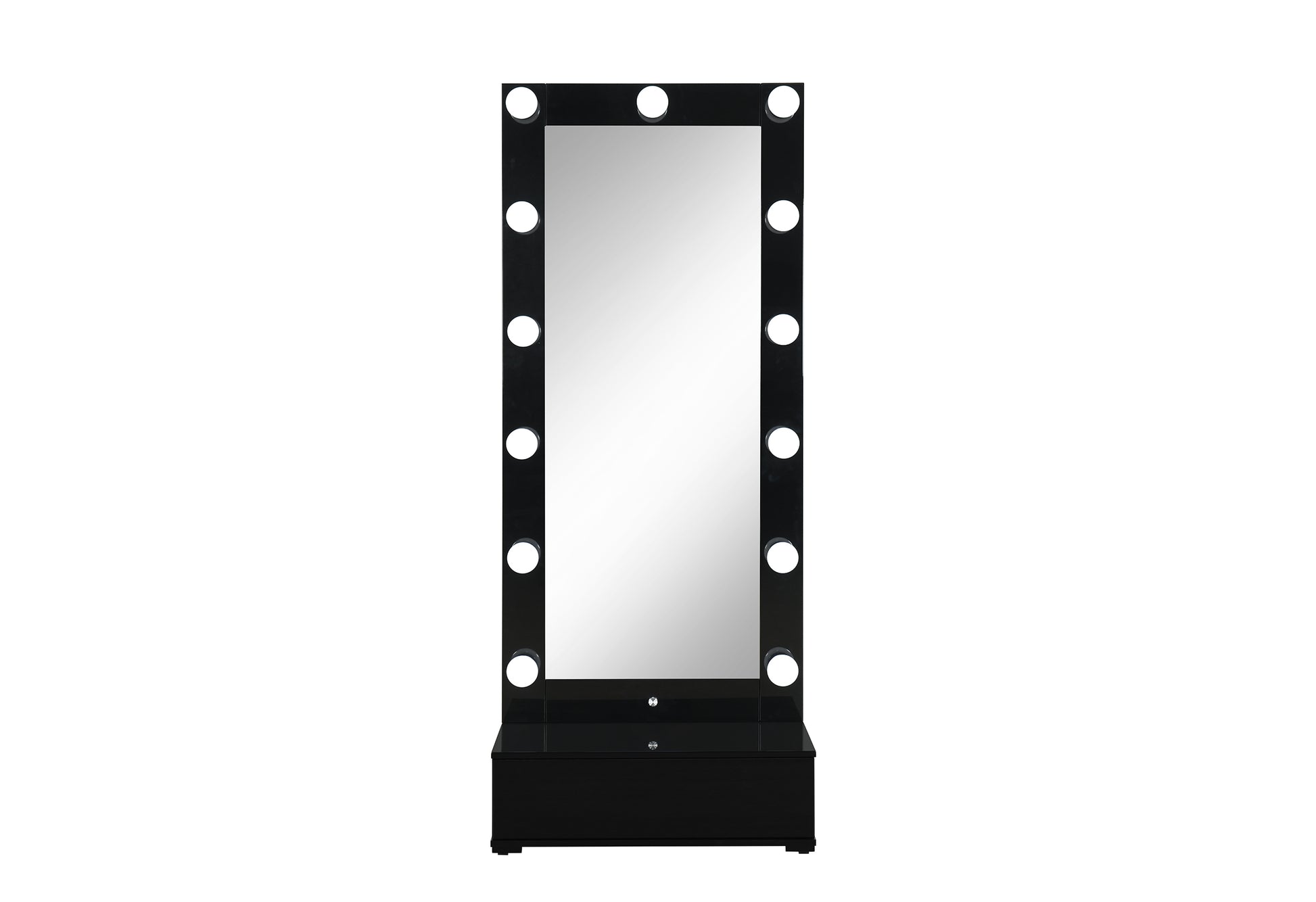 ELLA Black Narrow Tall Mirror with Drawer and Speaker