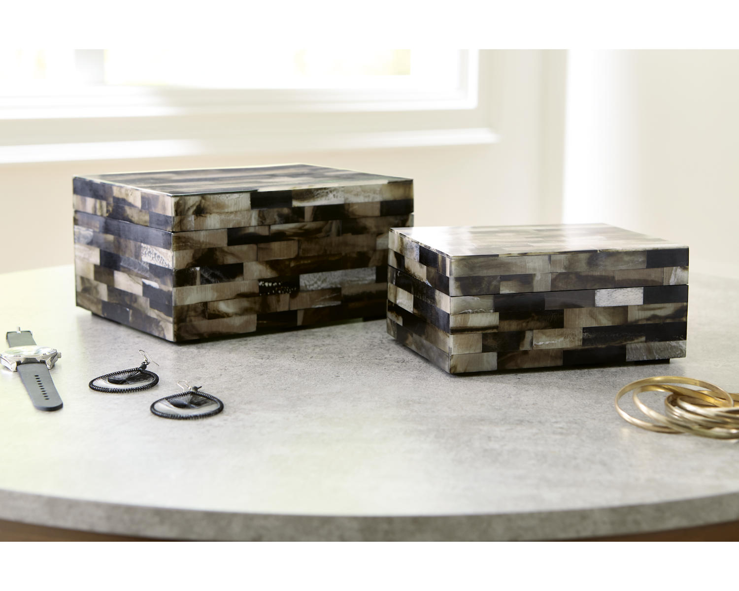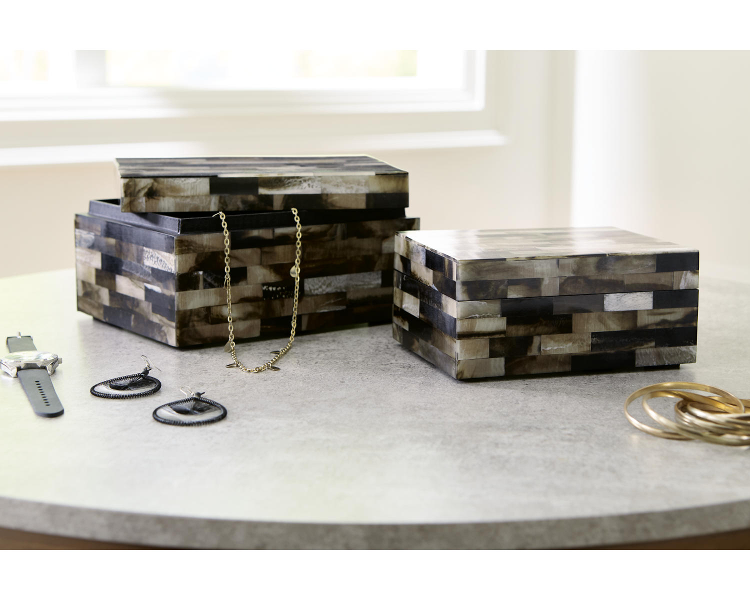 Meet the Ellford Box set—a practical storage solution designed for tidy spaces and everyday use. This pair of boxes helps you organize essentials with a clean, timeless look that fits in living rooms, bedrooms, or offices. The coordinated Black, Brown, and Cream palette blends with a wide range of decors while keeping contents accessible and neatly contained.