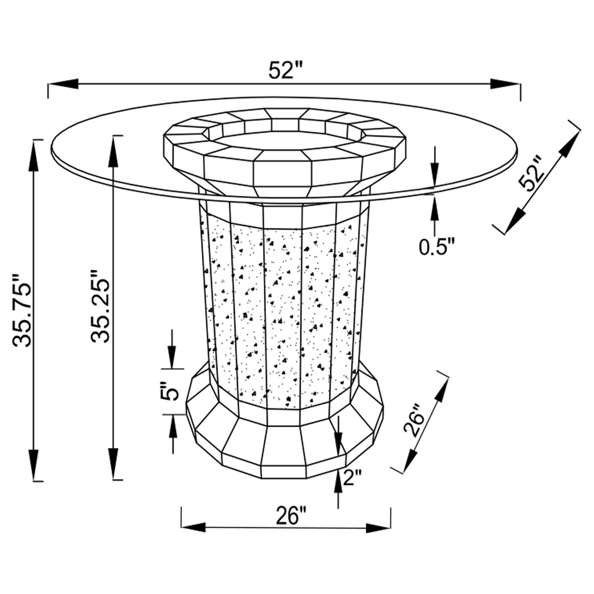 - 52-inch glass top provides generous space for meals and social seating.