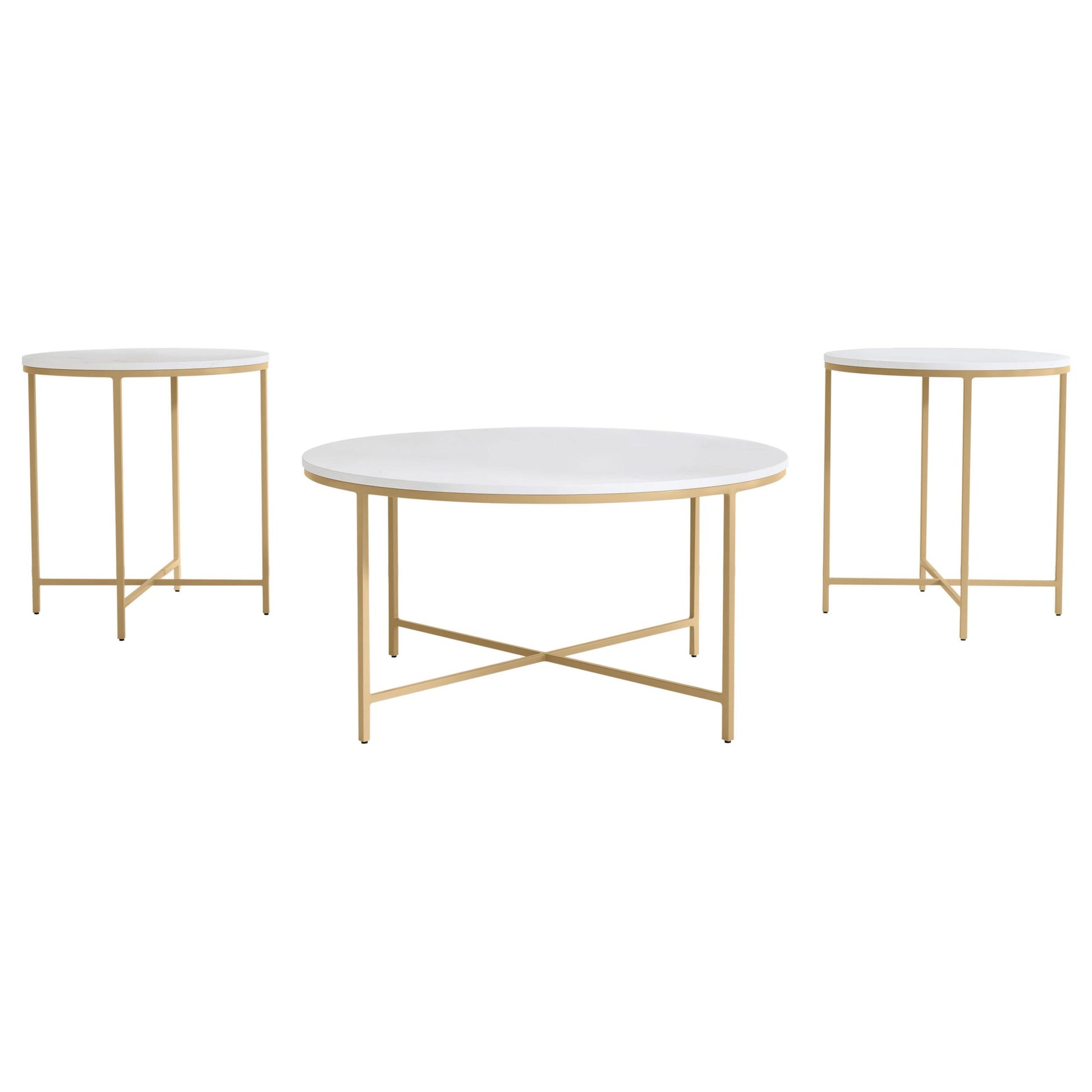 - Three-piece set includes one coffee table and two end tables for a complete living-area solution