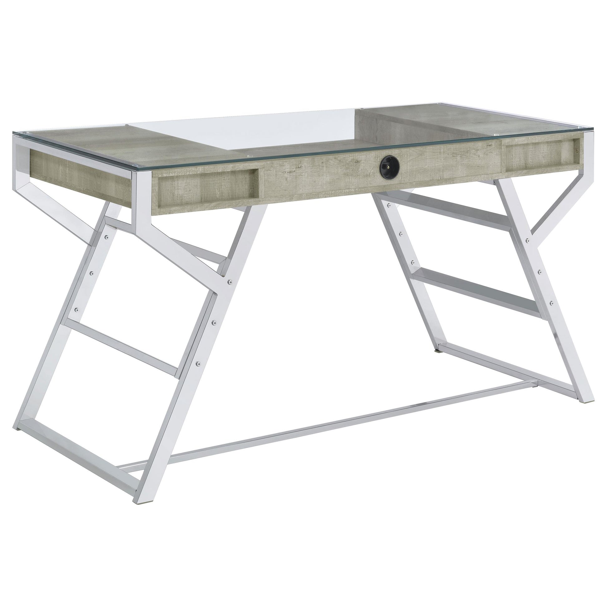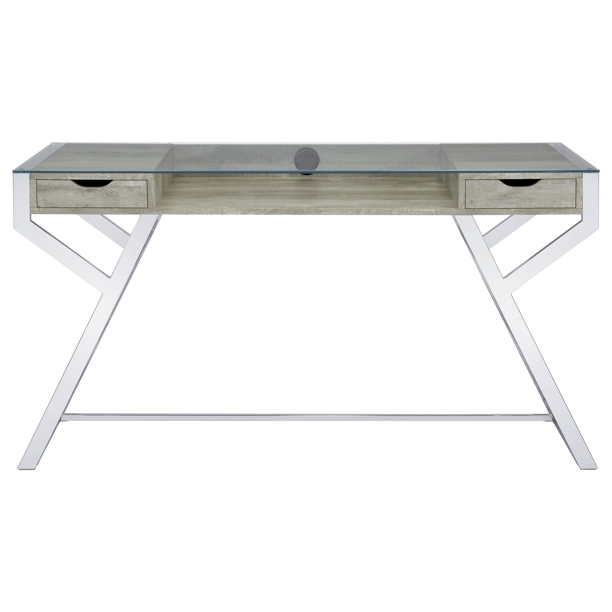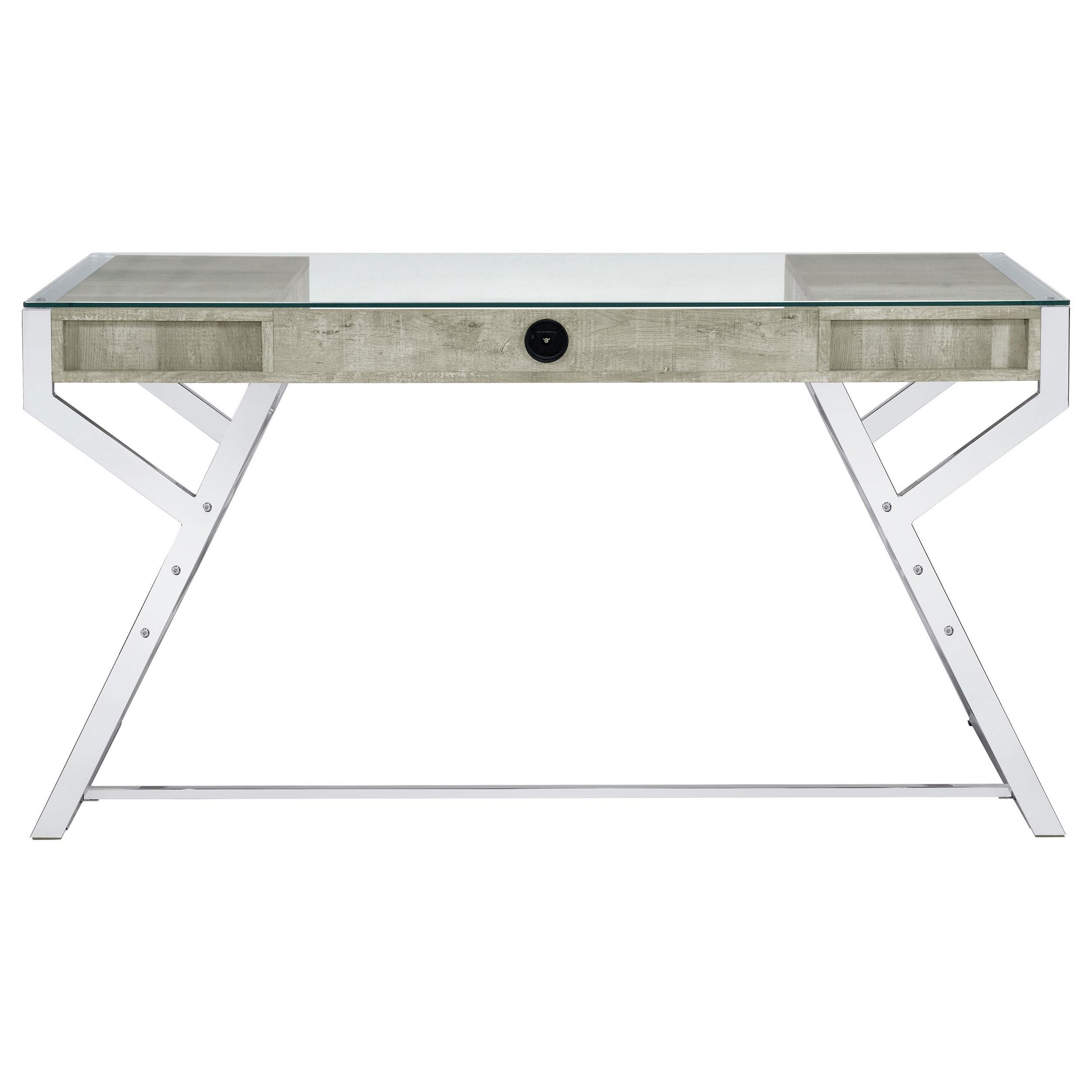 Emelle 56-inch Glass Top Writing Desk Grey Driftwood
