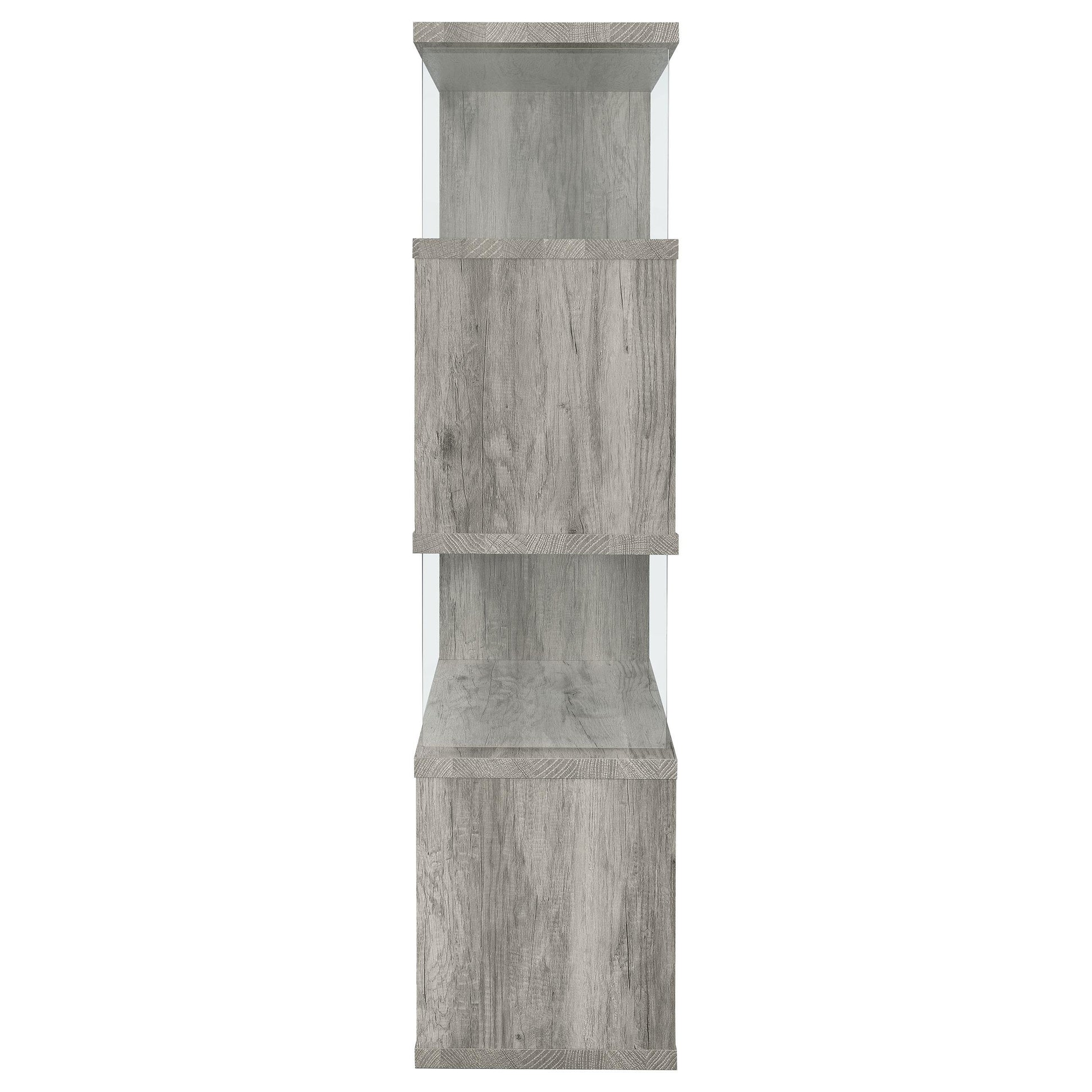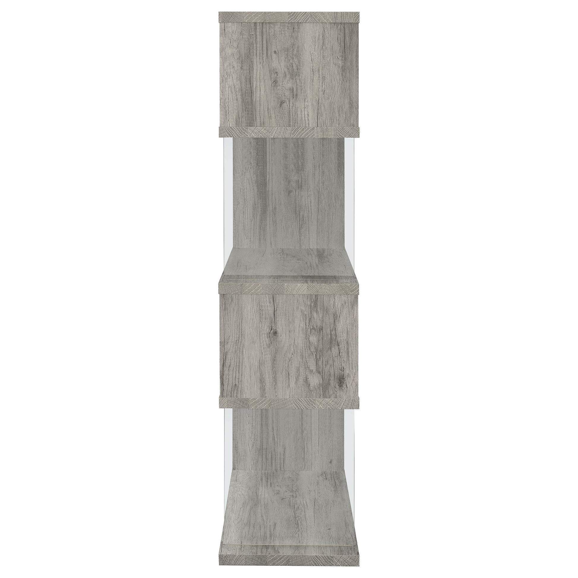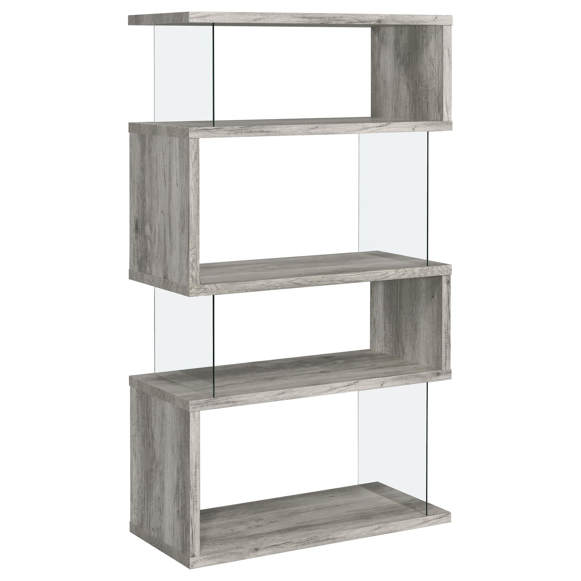 Emelle 63-inch 4-Shelf Glass Panel Bookshelf Grey Driftwood