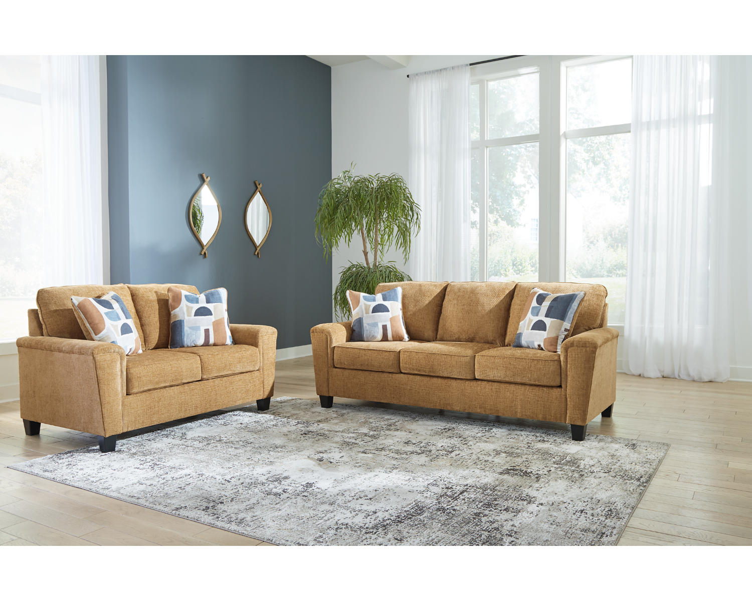 Meet the Erinslane Sofa and Loveseat in honey—a coordinated seating duo that brings warmth and versatility to any living space. This two-piece set is ideal for living rooms, family rooms, or cozy apartments where comfort and style matter. With its timeless silhouette and inviting upholstery, it adapts to a wide range of decors while inviting guests to linger.