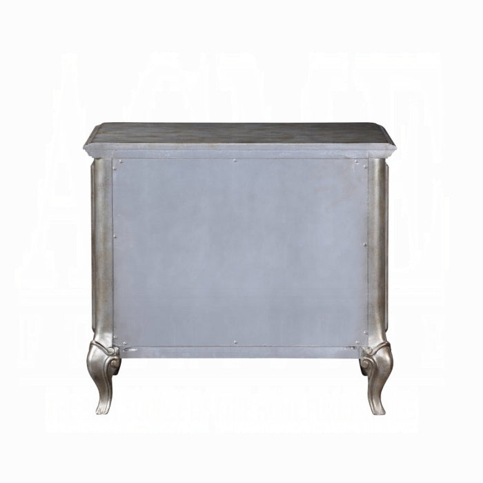 Meet the Esteban Nightstand—an elegant bedside solution crafted for bedrooms that value classic style and reliable performance. With an Antique Champagne finish and a compact 32"W x 18"D footprint, it blends seamlessly beside your bed while offering practical storage and a timeless look.