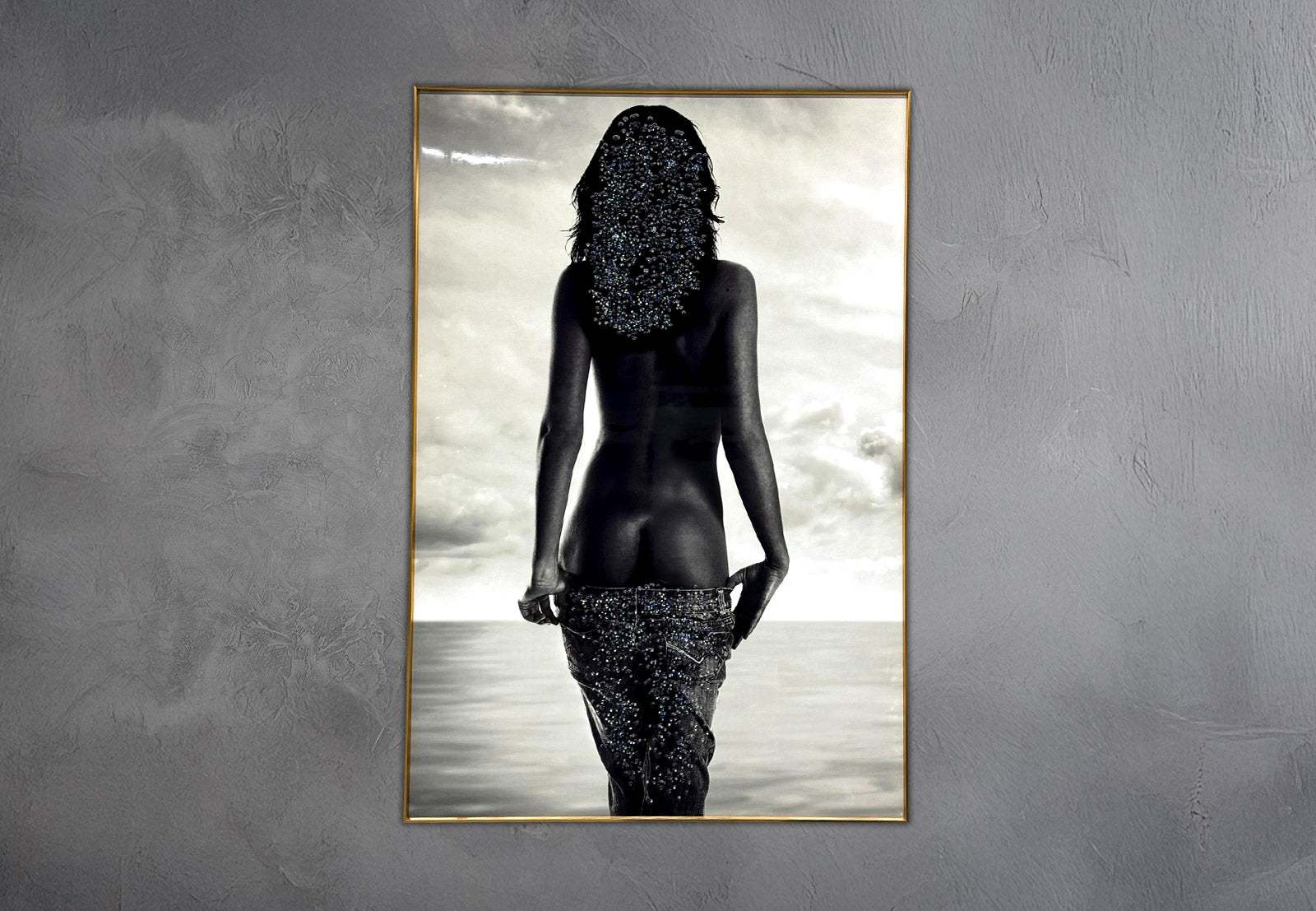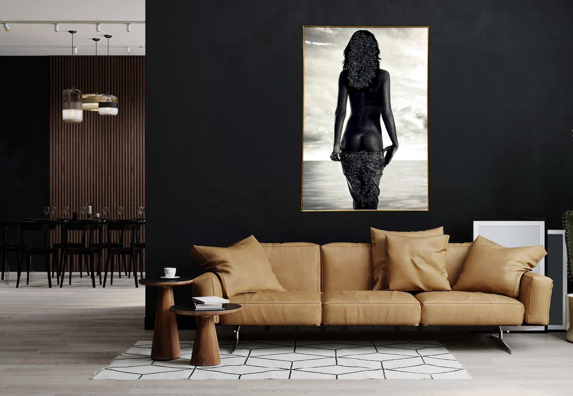 Ethereal Ocean Muse is a mesmerizing black-and-white portrait of a woman, enhanced by shimmering details that evoke the mystery and beauty of the sea. Designed for art lovers seeking refined monochrome decor, this piece adds a sophisticated focal point to any room. Its timeless, versatile style makes it suitable for living spaces, bedrooms, or creative studios.