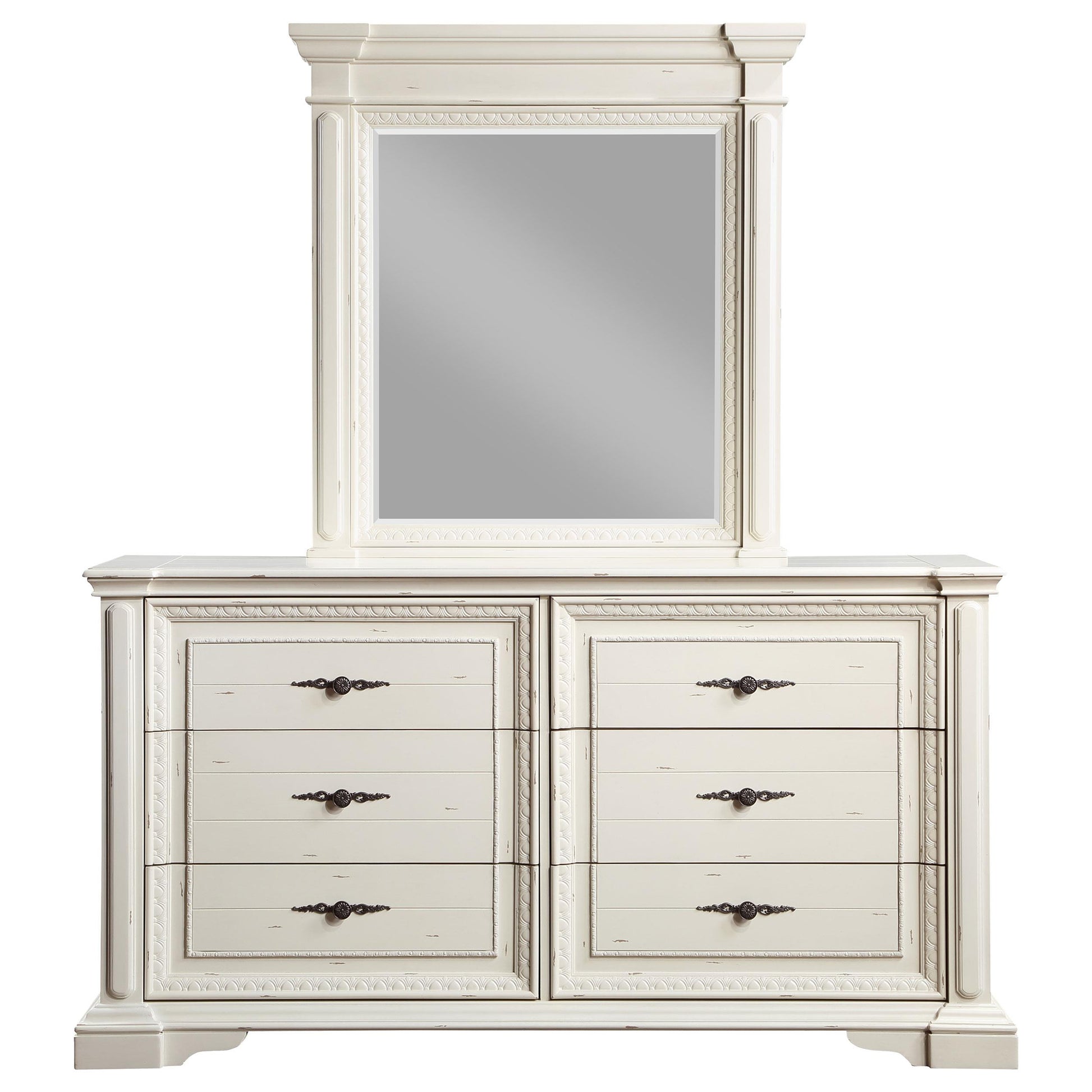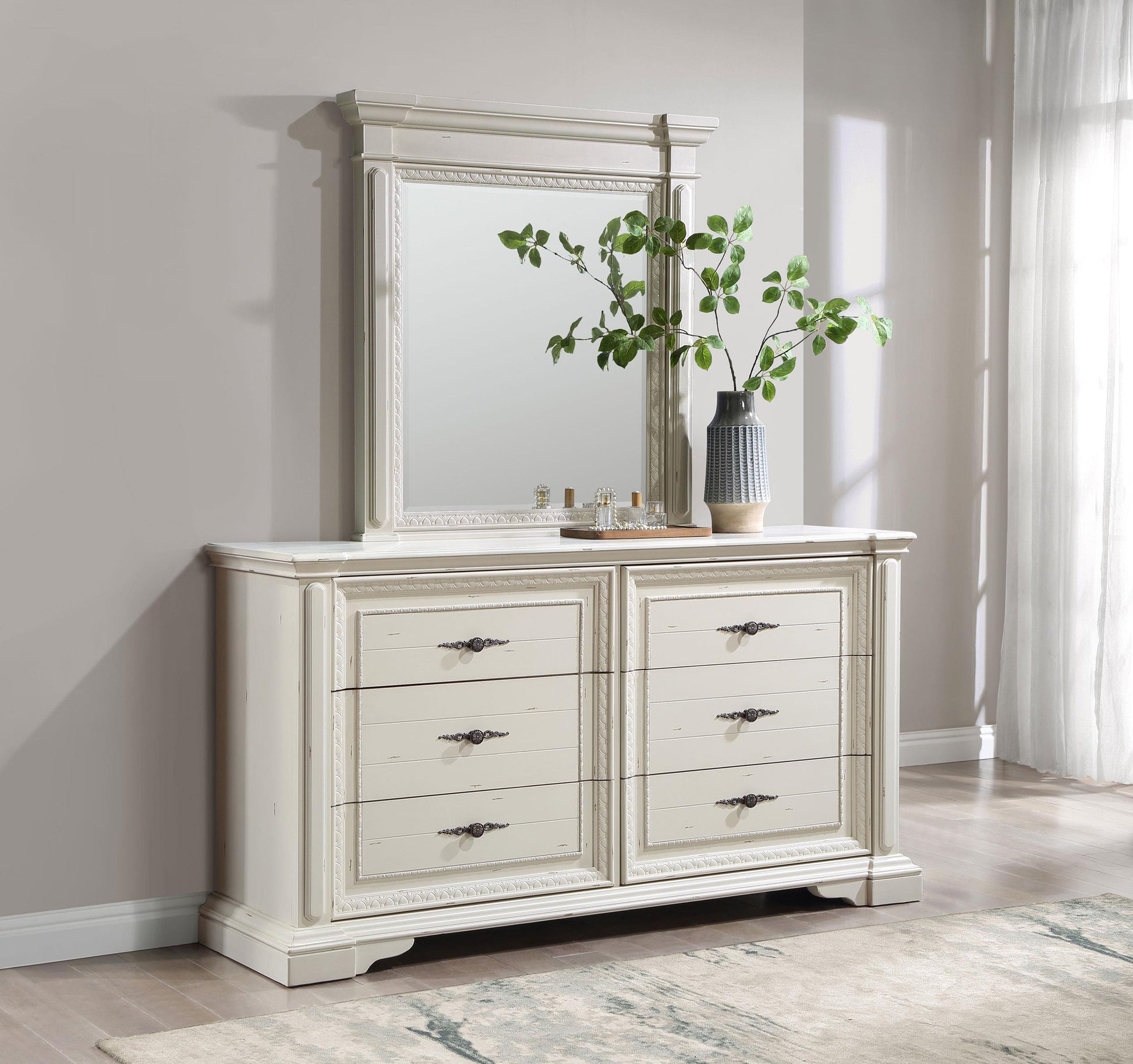 Evelyn 6-drawer Dresser with Mirror Antique White