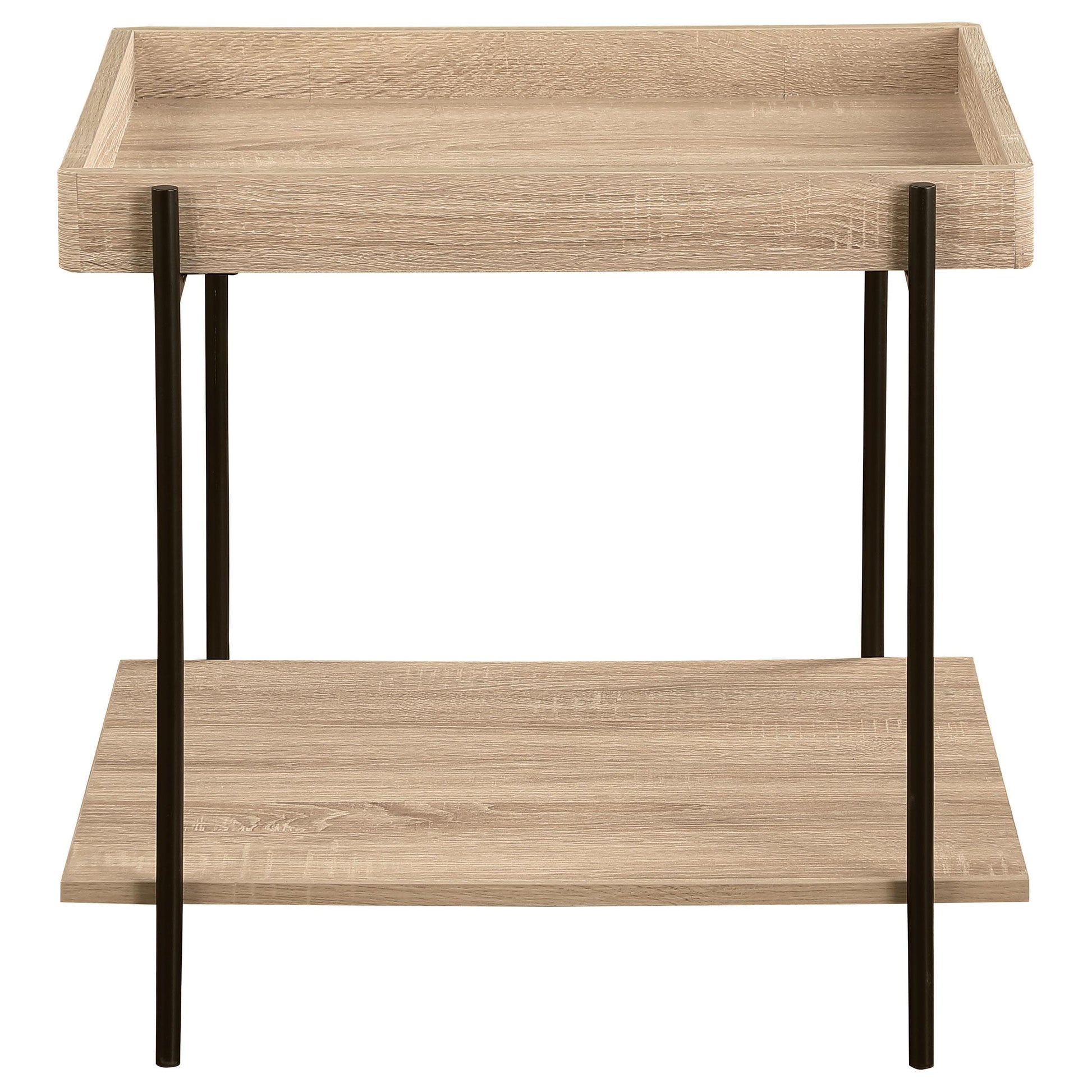 - Shape and footprint: Square end table designed for compact spaces