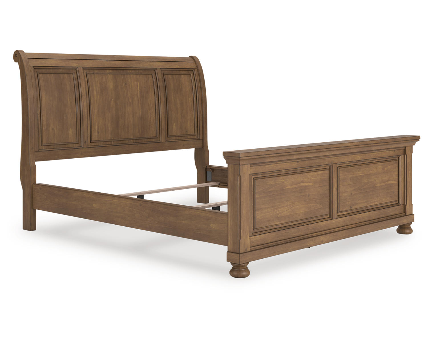 Experience a timeless centerpiece with the Feddinger California King Sleigh Bed. Designed for spacious master suites and guest rooms alike, it blends classic sleigh-bed curves with a warm medium brown finish. This bed brings refined, versatile style that adapts to both traditional and contemporary bedroom décor.